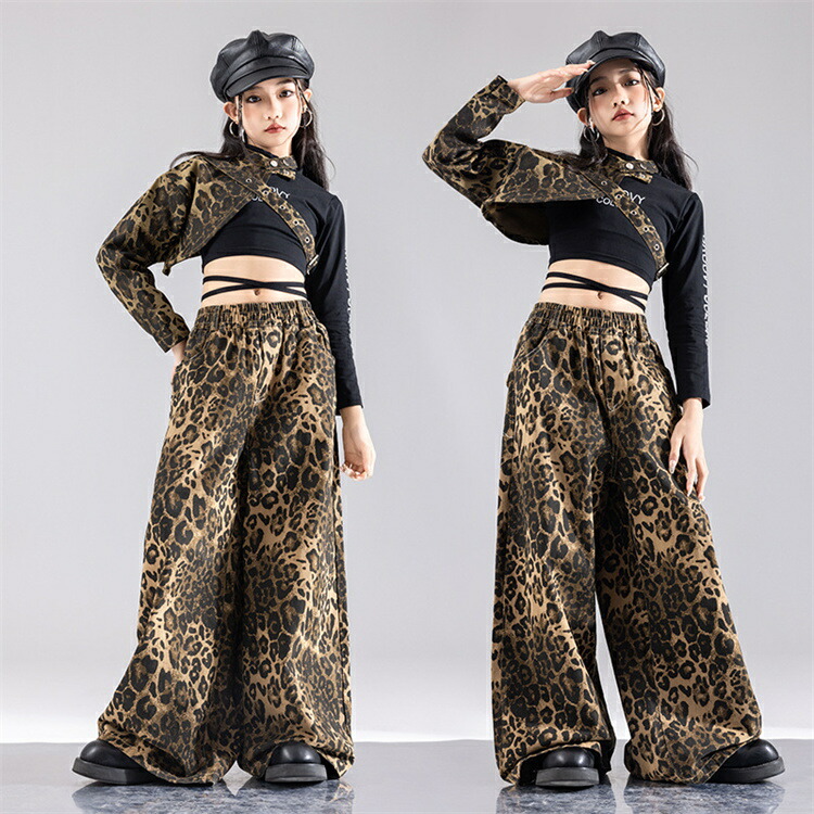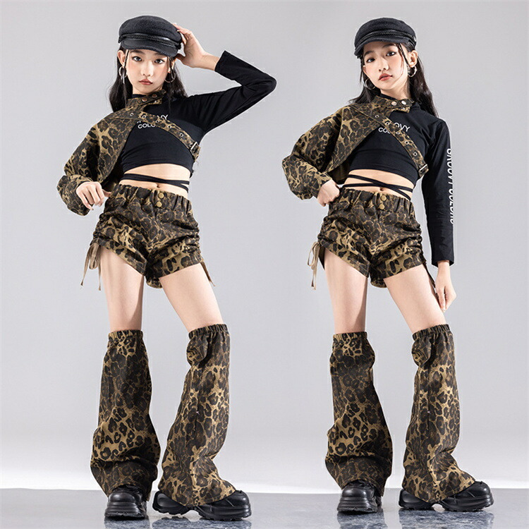 ヒョウ柄 セットアップ キッズ ダンス キッズ スーツ カジュアルセットアップ カジュアルパンツセット 新登場! トップス2点 ヒョウ柄短パン+レッグカバー ヒョウ柄長ズボン トップス2点+短パン+レッグカバー トップス2点+長ズボン 110 120 130 140 150 160 170 180