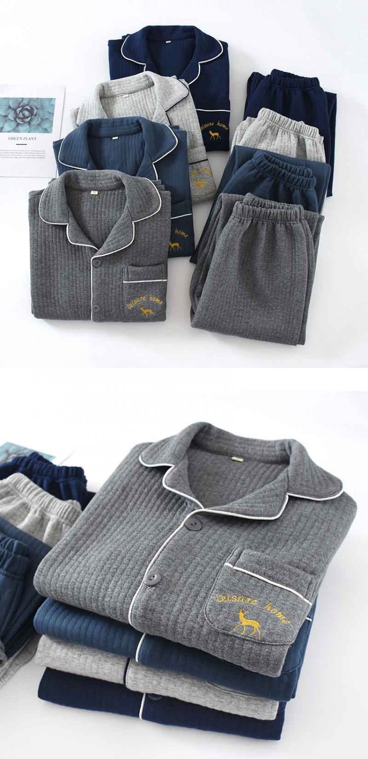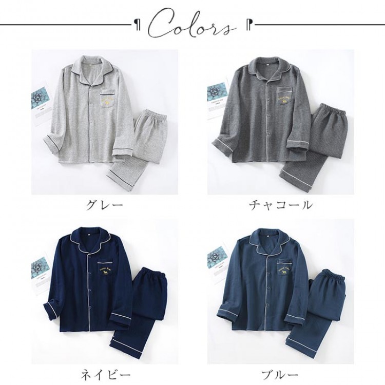 パジャマ メンズ 綿100% キルト レディースファッション 特集 グレー チャコール ネイビー ブルー M L XL