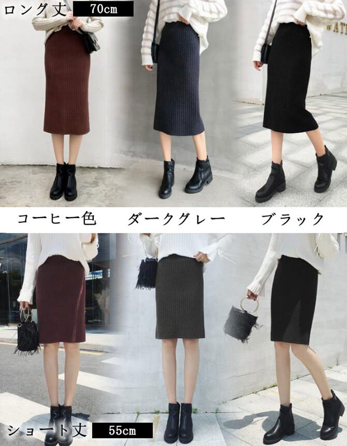 ニットスカート タイト レディース タ ボトムス スカート 人気 ブラック コーヒー色 ダークグレー 杏色 Aホワイト Aブラック Aグレー Aカラメル Aコーヒー ショート丈 ロング丈 F