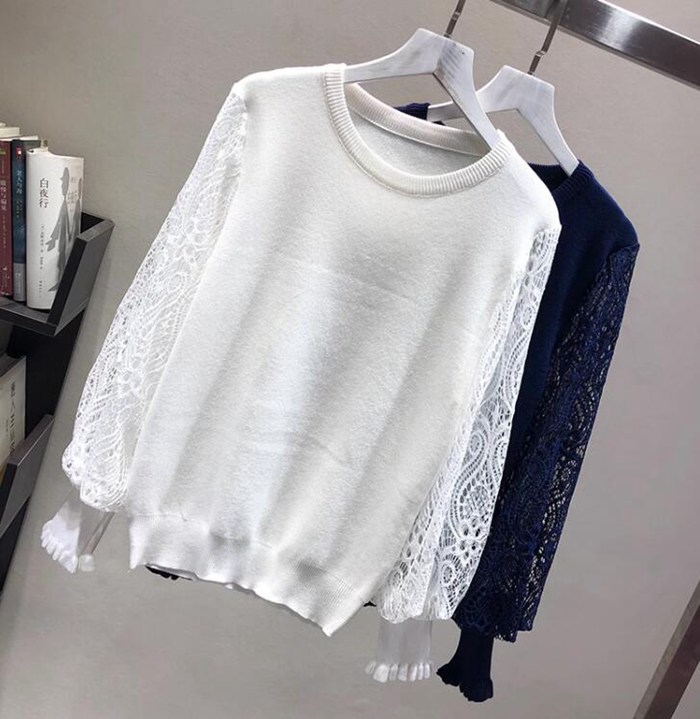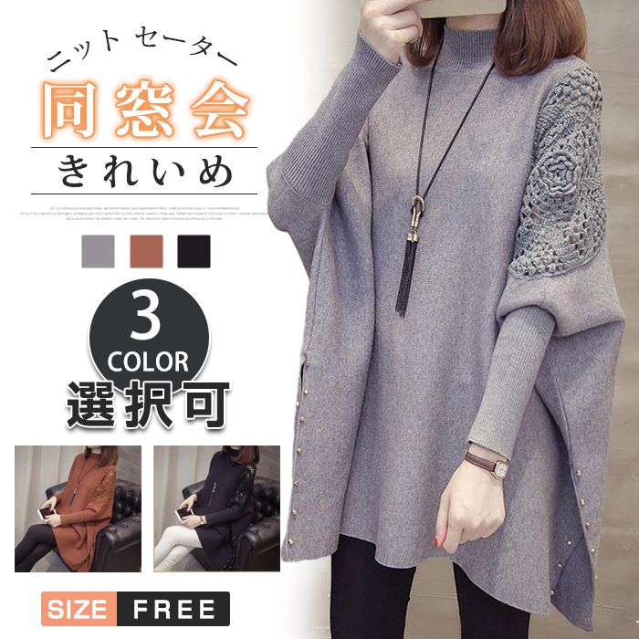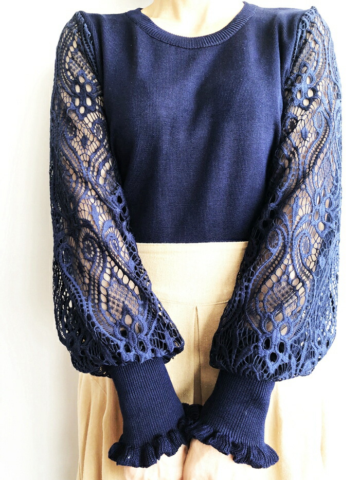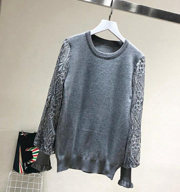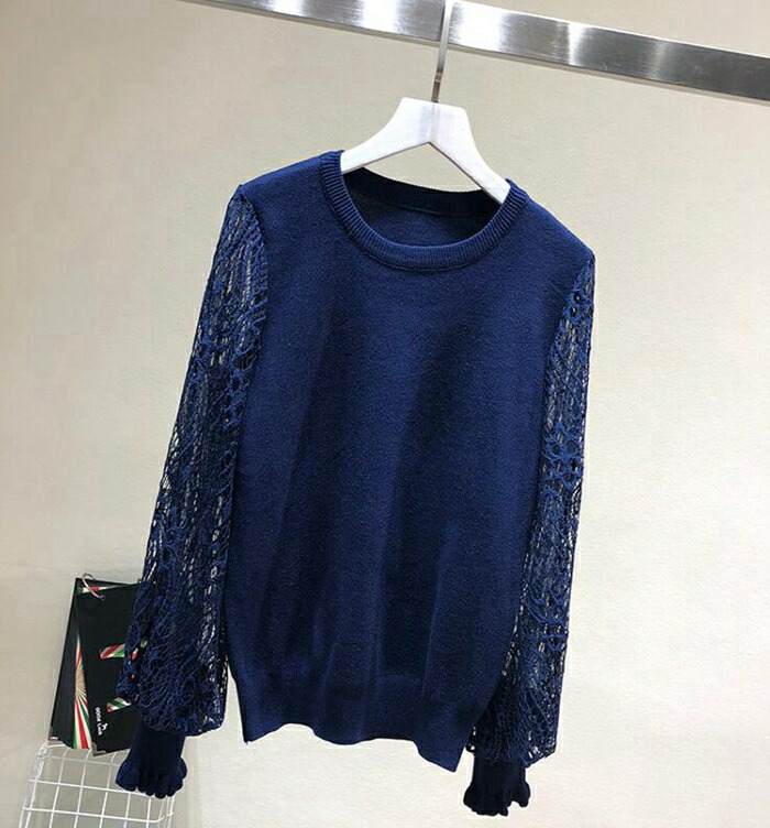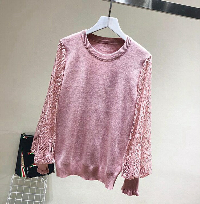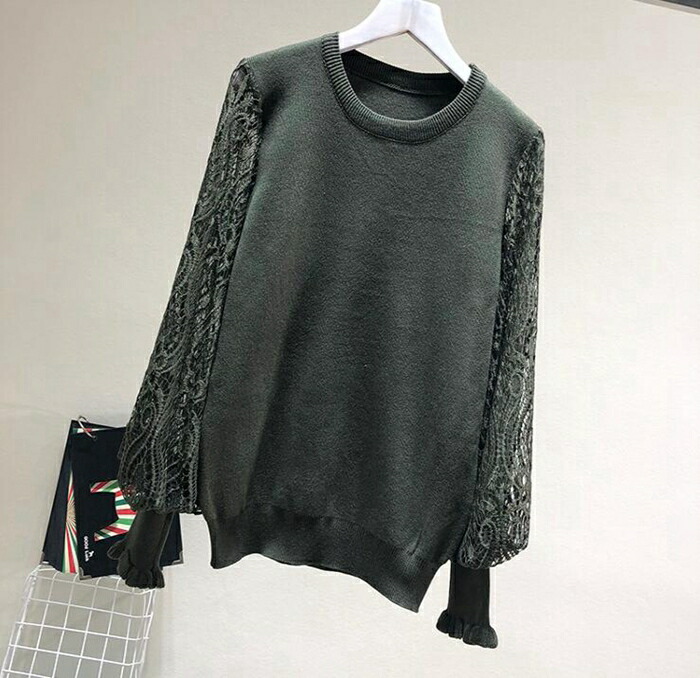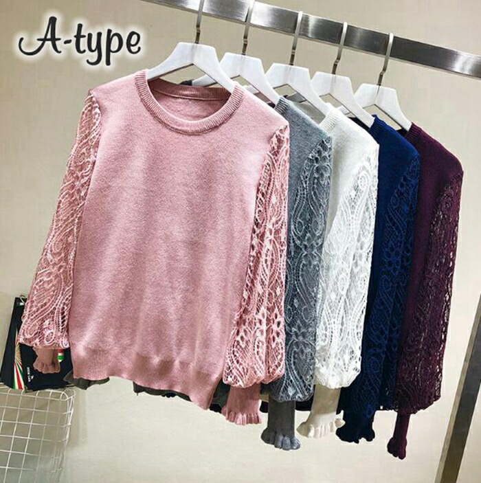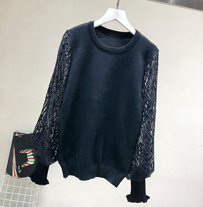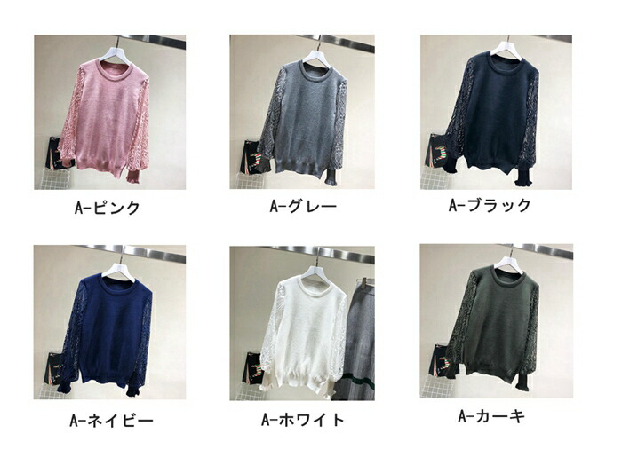 袖レース ニット セーター ニットソー トップス ニット セーター セーター 豊富 A-ブラック A-ホワイト A-グレー A-カーキ A-ピンク A-ネイビー B-ブラック C-カラメル C-グレー C-ブラック