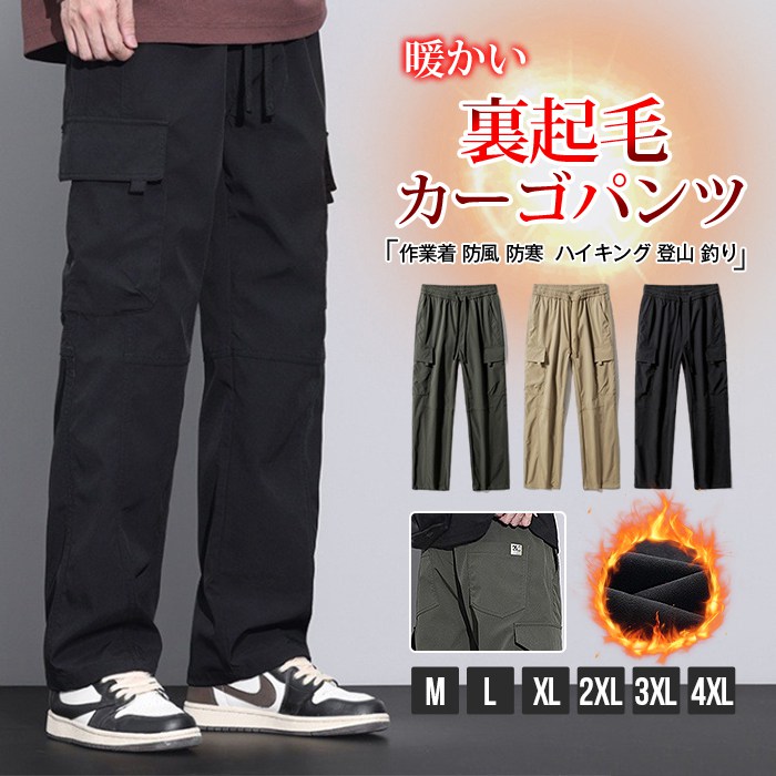 カーゴパンツ ボトムス メンズ 裏起毛 メンズファッション 続々登場 ブラック キャメル グリーン M L XL 2XL 3XL 4XL