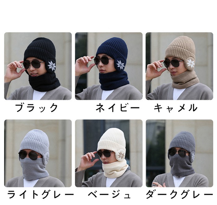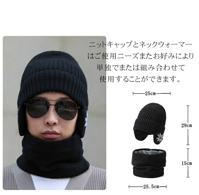 耳あて付きニット帽 裏起毛 ネックウォ 帽子 レディース帽子 ニット帽 特集 ネイビー ベージュ ライトグレー