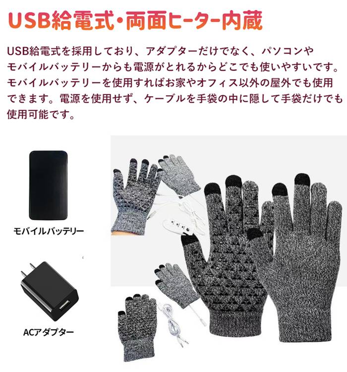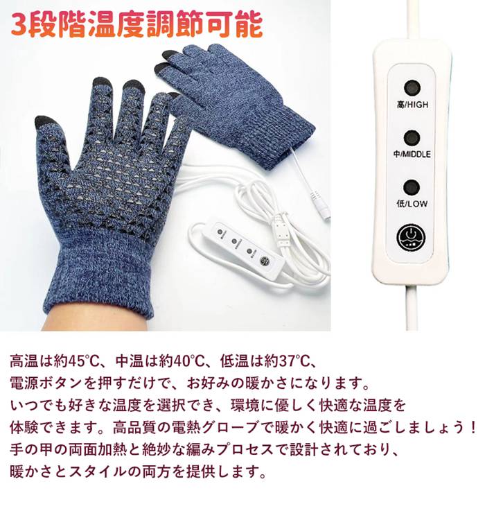 電熱手袋 3段階温度調節 ヒーター付き 手袋 アームウォーマー メンズ手袋 豊富 ブルー ブラック ライトグレー