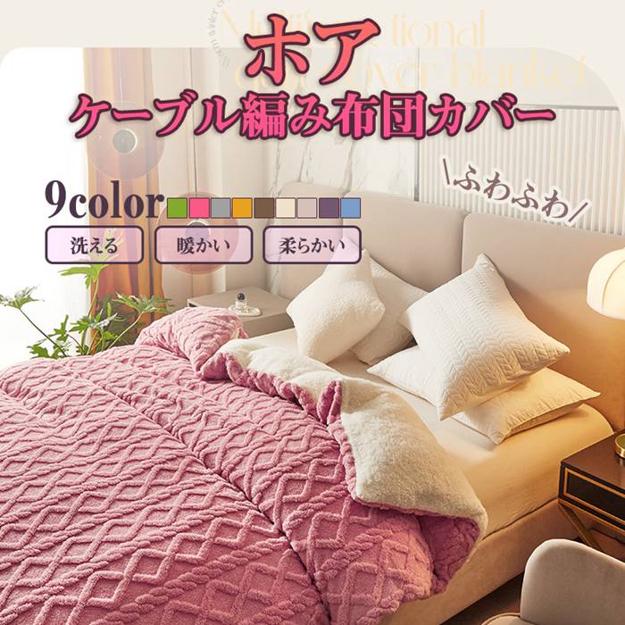 ホアケーブル編み布団カバー 暖かい オ インテリア 寝具 収納 豊富 グリーン ピンク グレー イエロー コーヒー ベージュ 杏色 ブルー パープル