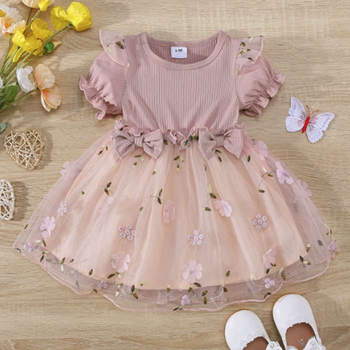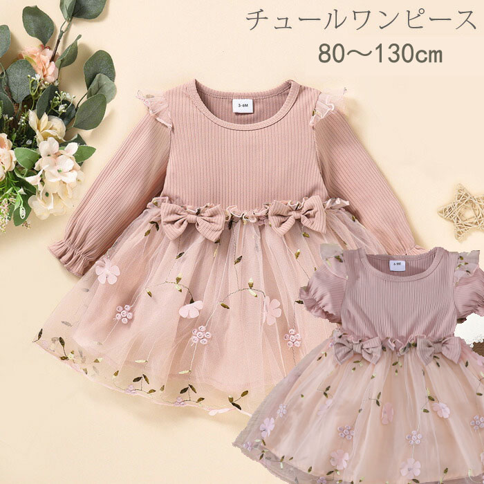 女の子チュールワンピース ドレス 誕生 ベビー ベビー服 ファッション ワンピース 早い者勝ち ピンク長袖 ピンク半袖 80 90 100 110 120 130