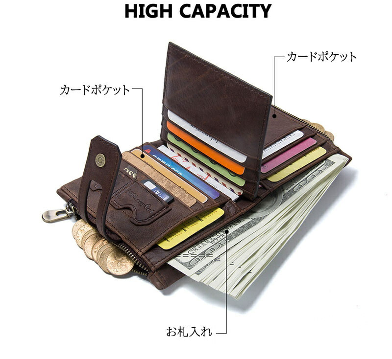 財布 二つ折り財布 本革 レザー 3C 財布 ケース メンズ財布 新作 コーヒー ブラック ブラウン