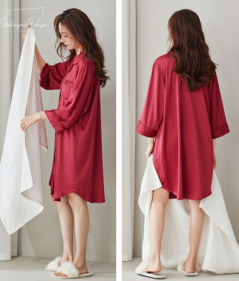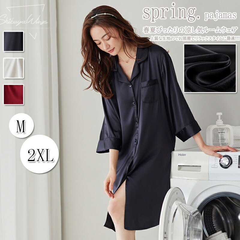 パジャマ レディース サテン調 シャツ インナー 下着 ナイトウエア 大人気! ブラック ベージュ レッド M(お勧め体重45-55kg) L(お勧め体重55-60kg) XL(お勧め体重60-70kg) 2XL(お勧め体重70-80kg)