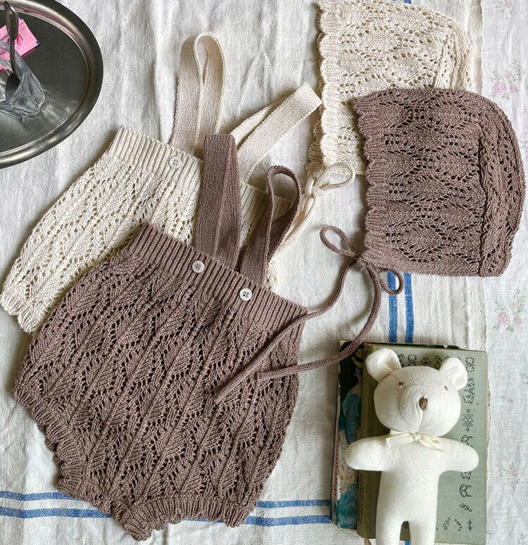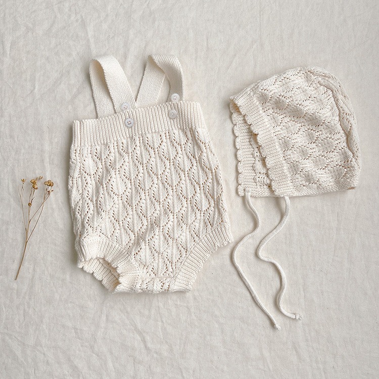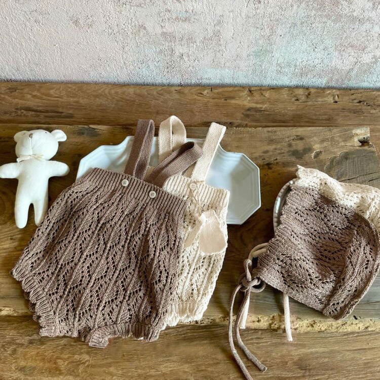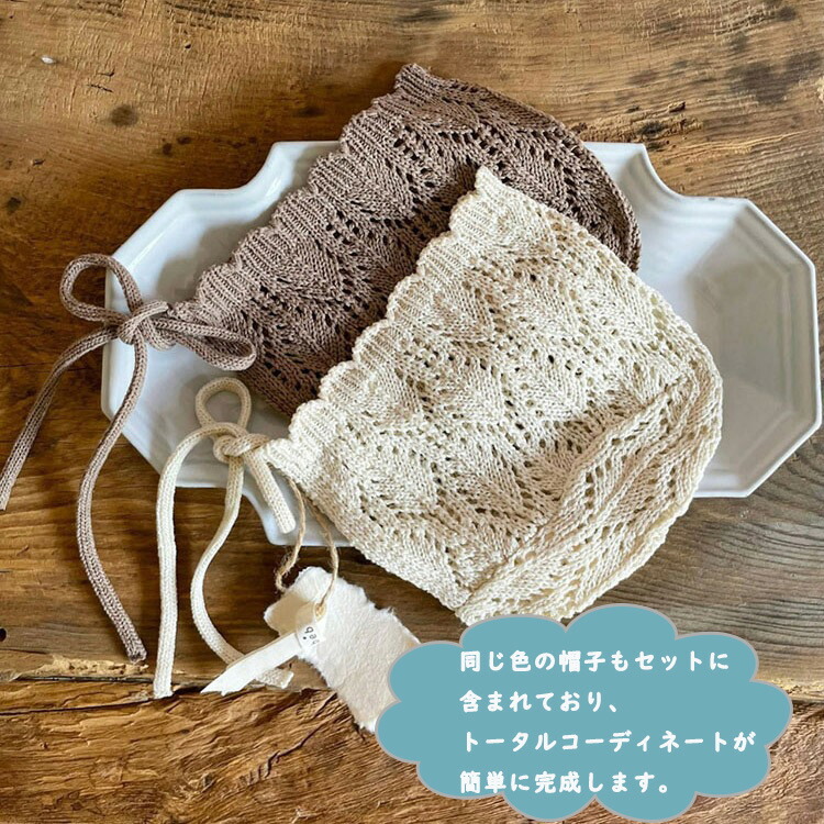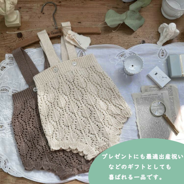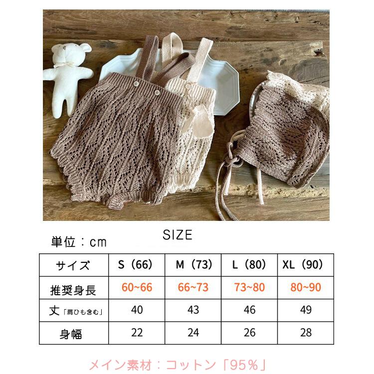 帽子付き サスペンダーニットロンパース キッズ ベビー マタニティ 人気 オフホワイト カーキ色 66cm 73cm 80cm 90cm