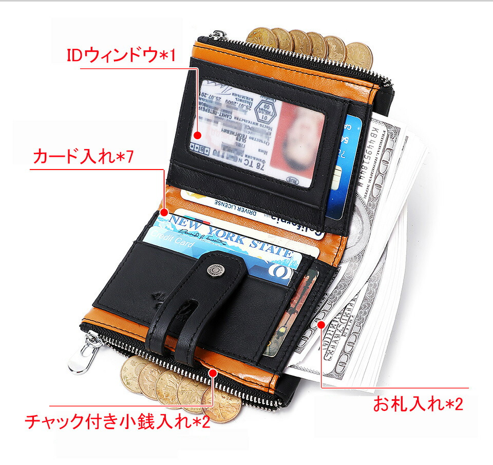 財布 メンズ 二つ折り カード7枚収納 財布 ケース メンズ財布 早い者勝ち ブラック ブラウン オレンジ
