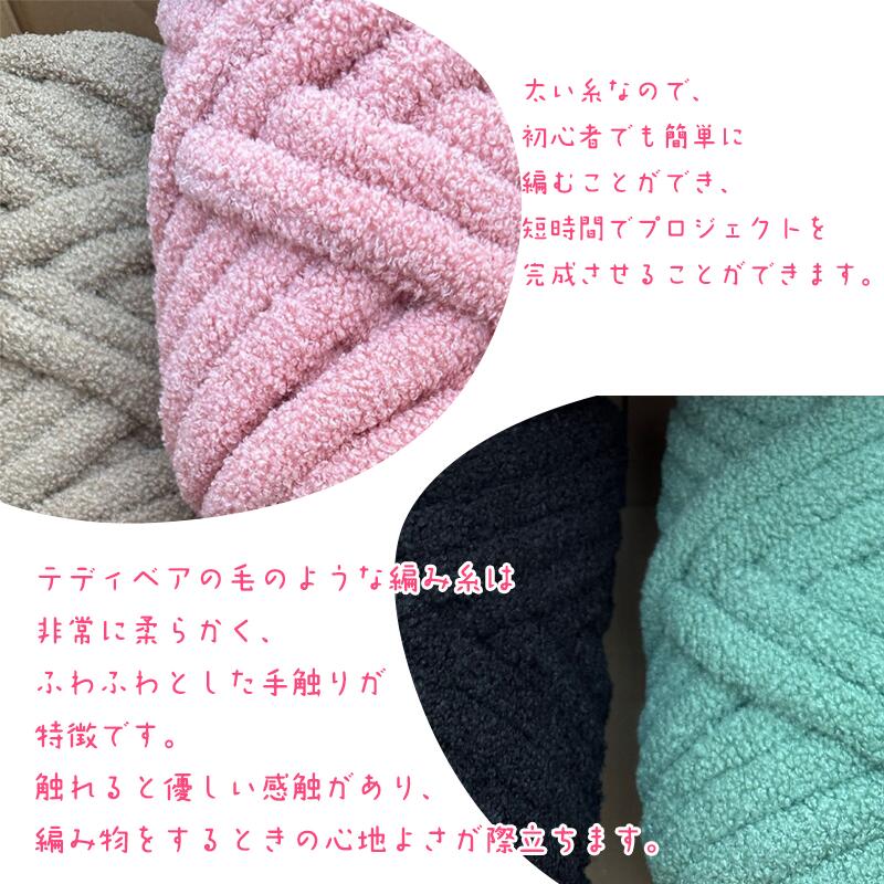 750G チャンキーニット テディベア 手芸 クラフト 生地 毛糸 豊富 オフホワイト ピンク イエロー ブラック グリーン カーキ ディープカーキ グレー ピンクパープル パープル ブラウン