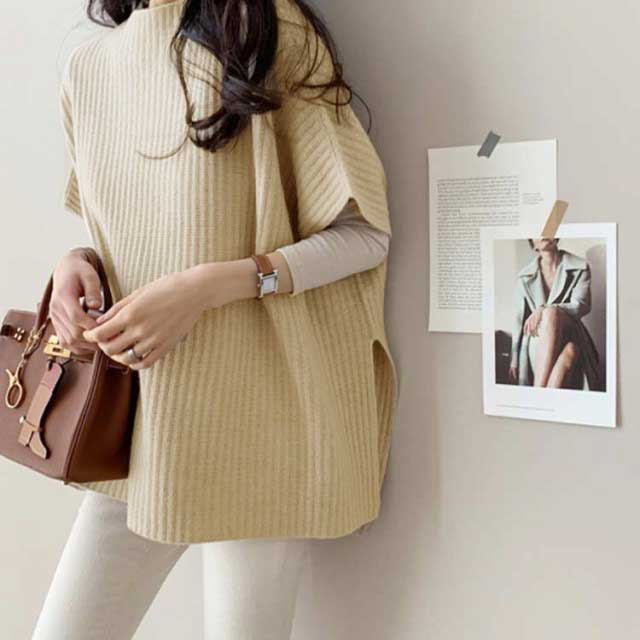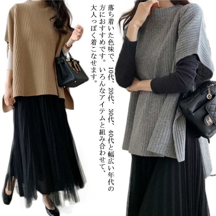 ベスト プルオーバー ポンチョ ニット トップス ベスト 早い者勝ち ベージュ ダークベージュ ブラック ホワイト