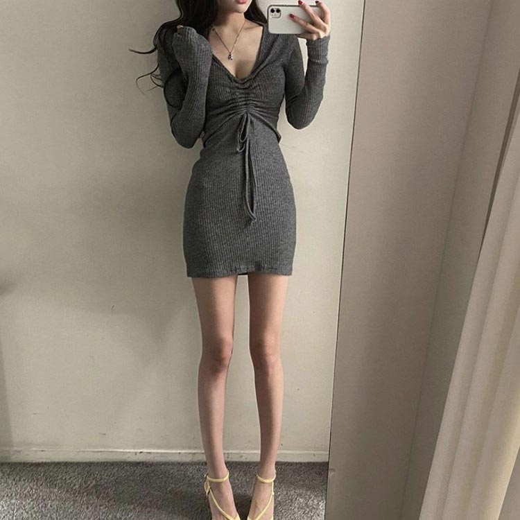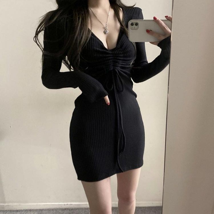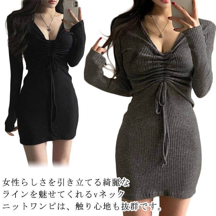 タイト Vネック ニット ミニ丈 ワン ワンピース 超目玉商品 ブラック グレー S M L XL 2XL 3XL