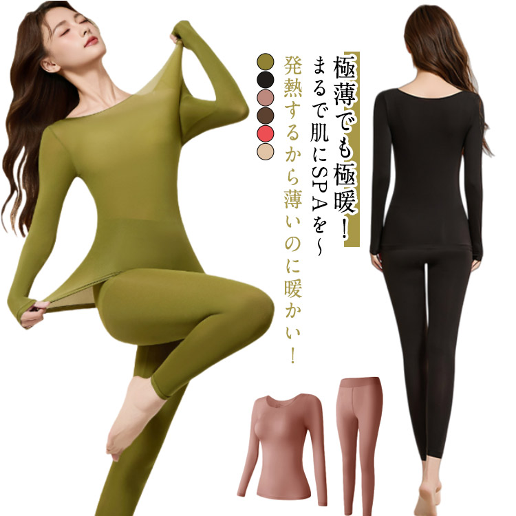 極暖 軽い あったかインナー 上下セッ インナー 下着 ナイトウエア 新登場! ブラック ベージュ レッド カーキ グリーン ブラウン L XL