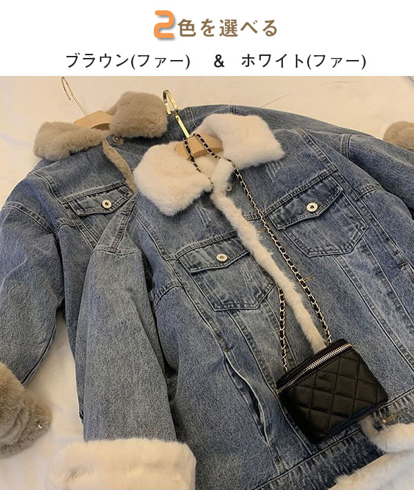 デニムコート デニムジャケット ファー レディースファッション 豊富 ホワイト(ファー) ブラウン(ファー) S M L XL 2XL