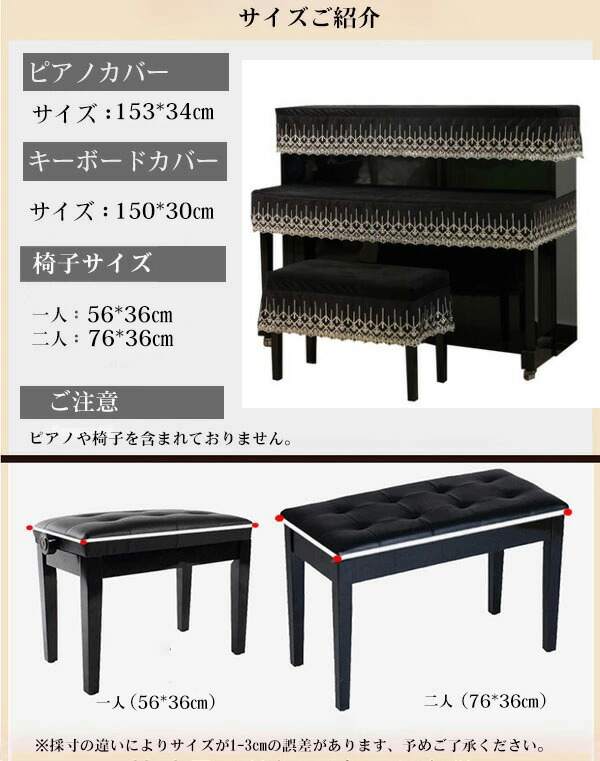 ピアノカバー 3点セット キーボードカ タイプA(ブルー) タイプA(グリーン) タイプA(ブラック) タイプA(ネイビー) タイプA(ベージュ) タイプA(パープル) タイプB(ブラック) タイプB(深緑) タイプB(紺色) 一人用(56*35cm) 二人用(76*35cm)