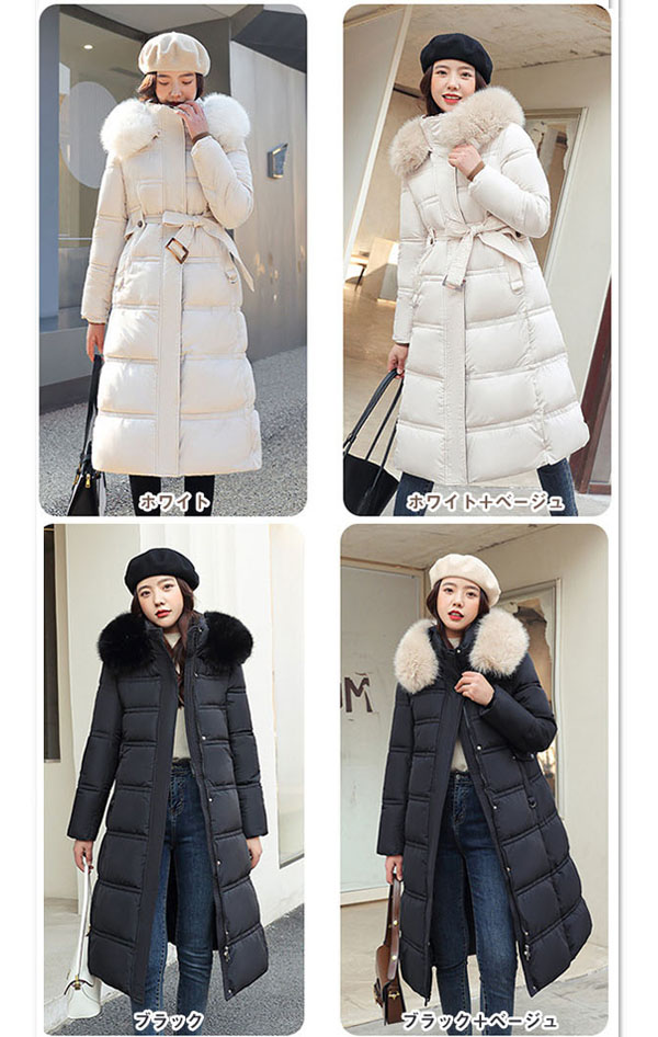 中綿コート レディース ロング フード レディースファッション 豊富 M L XL 2XL ブラック ホワイト コーヒー色 ブラック+ベージュ ホワイト+ベージュ コーヒー色+ベージュ