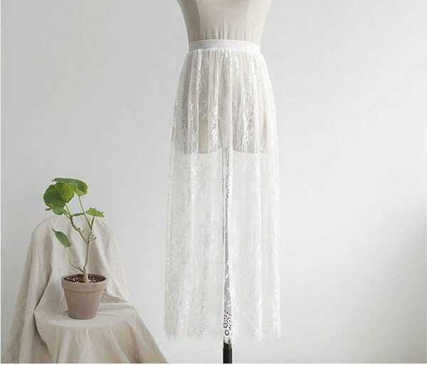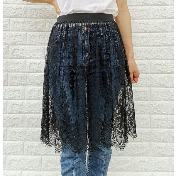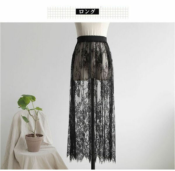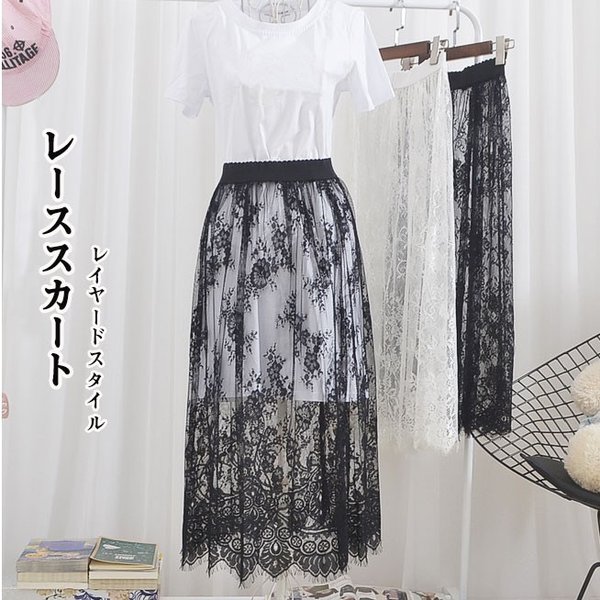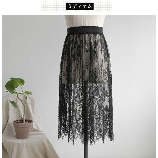 レース スカート 総レース チュールス ボトムス スカート 人気 ブラック ホワイト ミディアム(約57cm) ロング(約75cm)