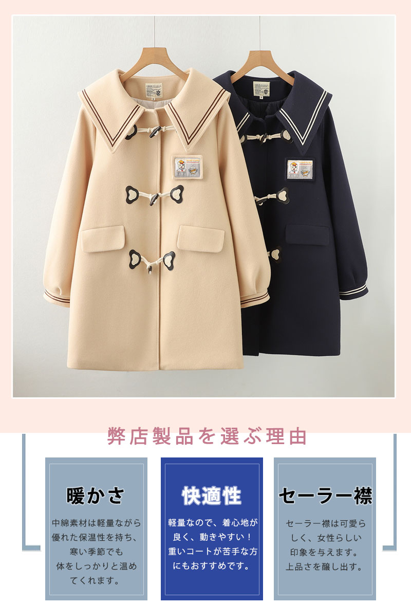 ダッフルコート 学生 セーラー襟 スク レディースファッション 豊富 ダークベージュ ネイビー S M L