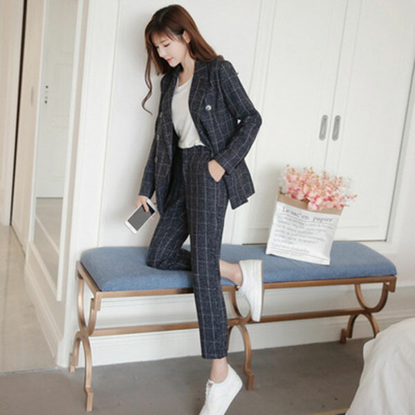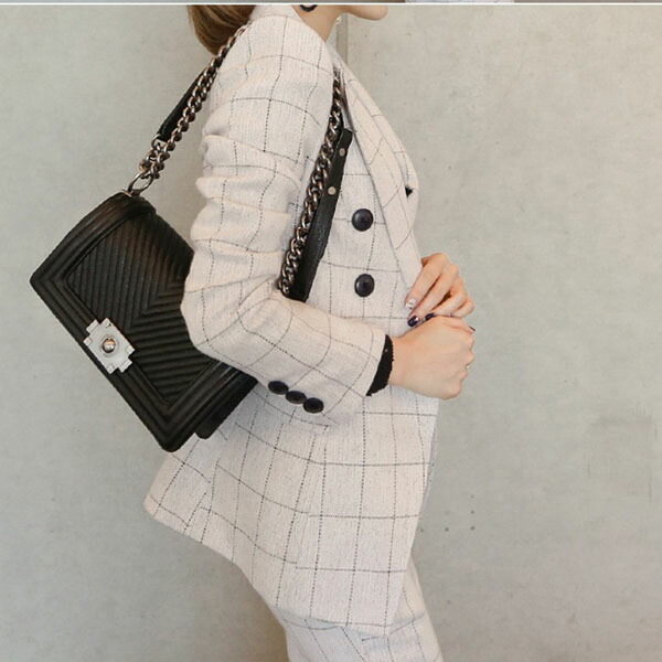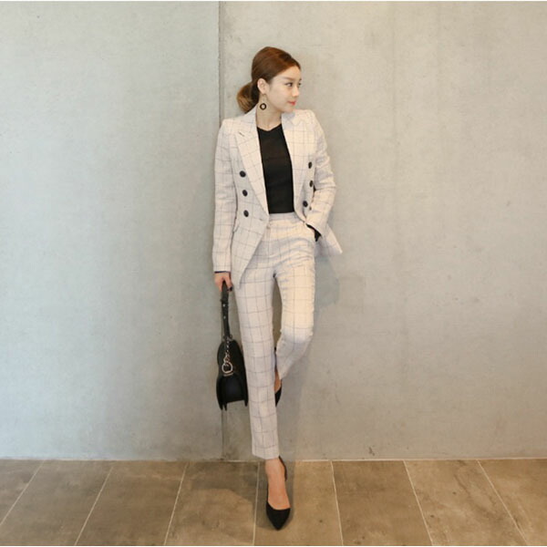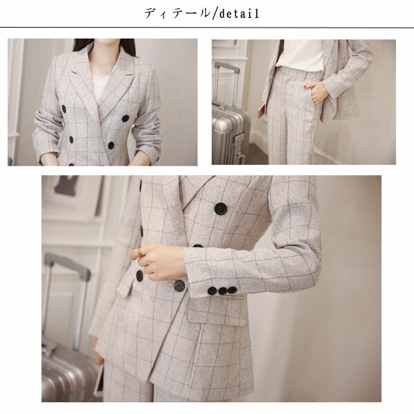 チェック柄スーツ セットアップ レディ レディースファッション 人気 オフホワイト ネイビー S M L XL