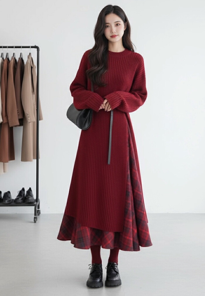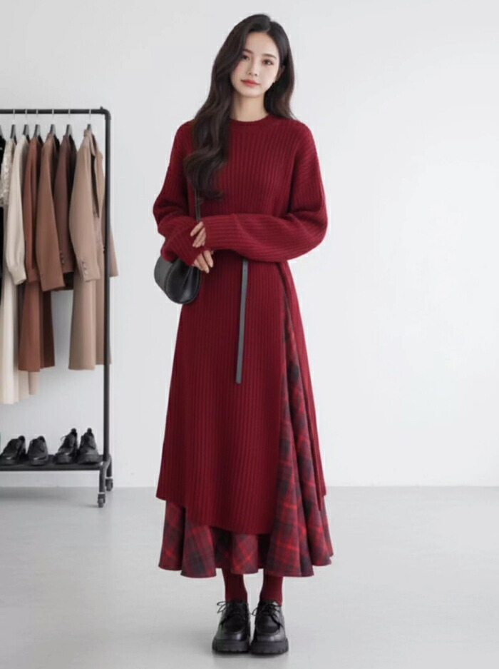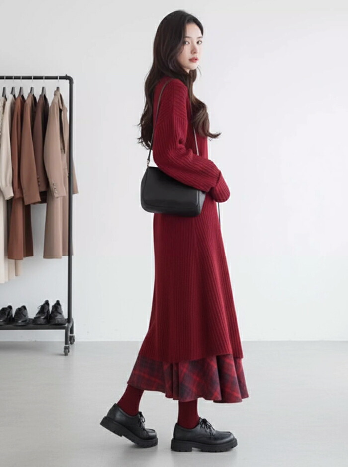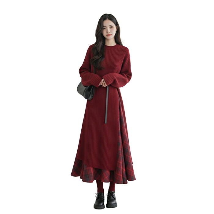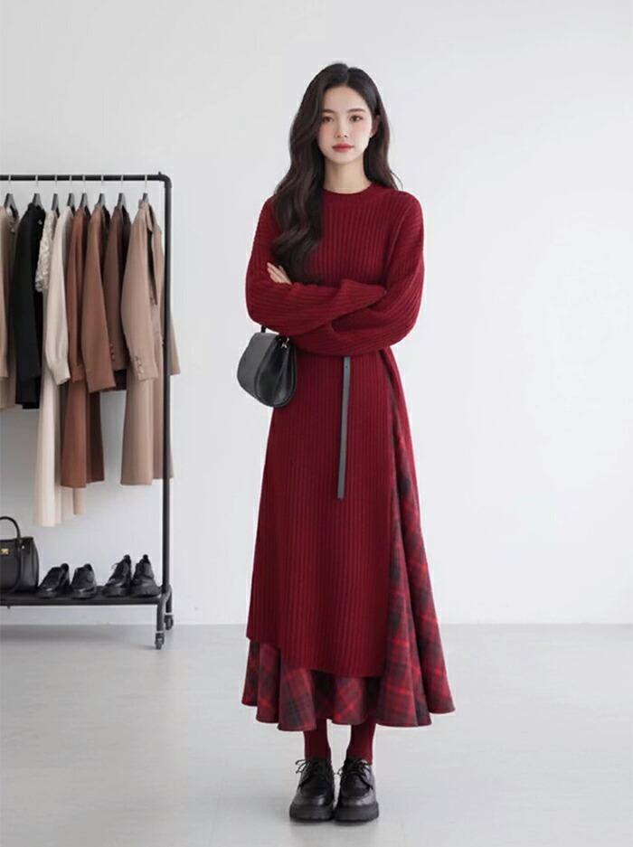 ニットセットアップ 秋冬 レディース スーツ セットアップ ワンピーススーツ 新登場! ニットワンピース+スカート+ベルト ニットワンピース+ベルト S M L XL