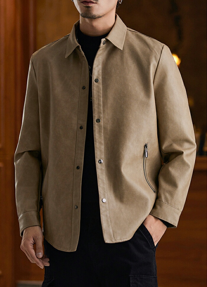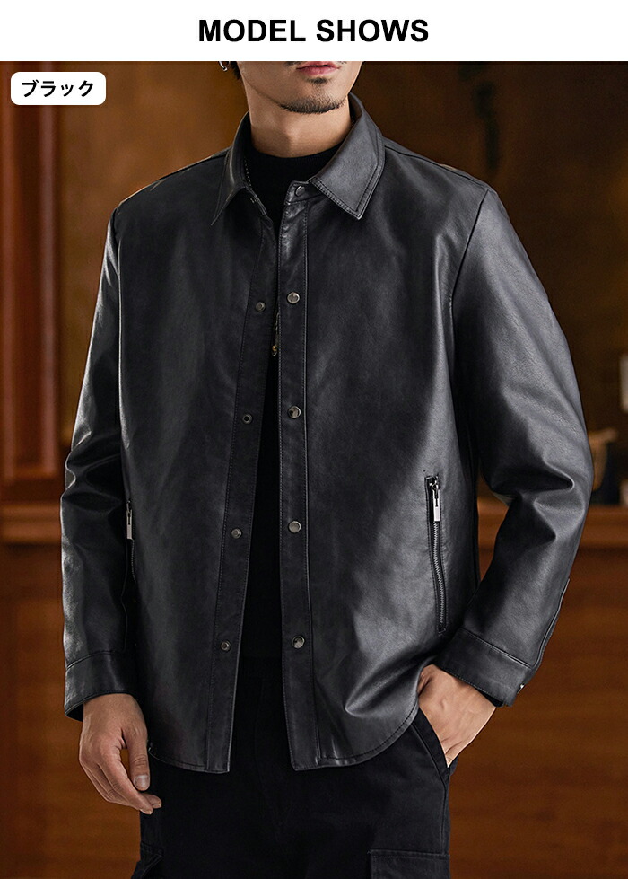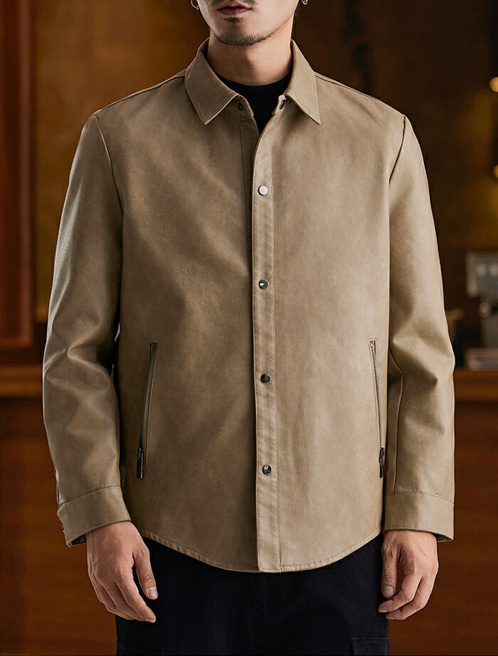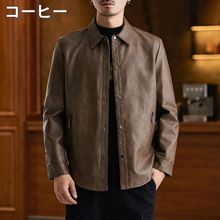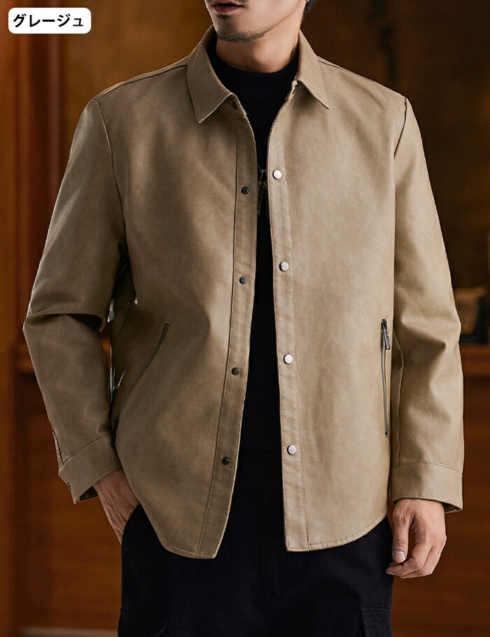レザージャケット メンズ シャツジャケ メンズファッション 続々入荷中 ブラック グレージュ コーヒー M L XL 2XL 3XL 4XL