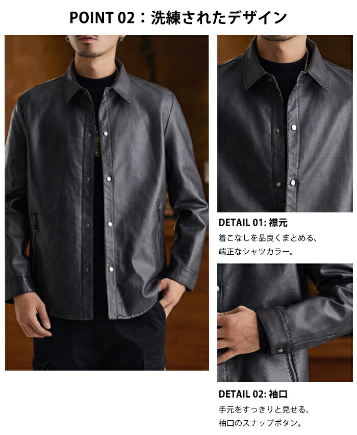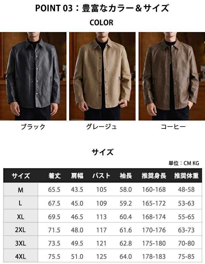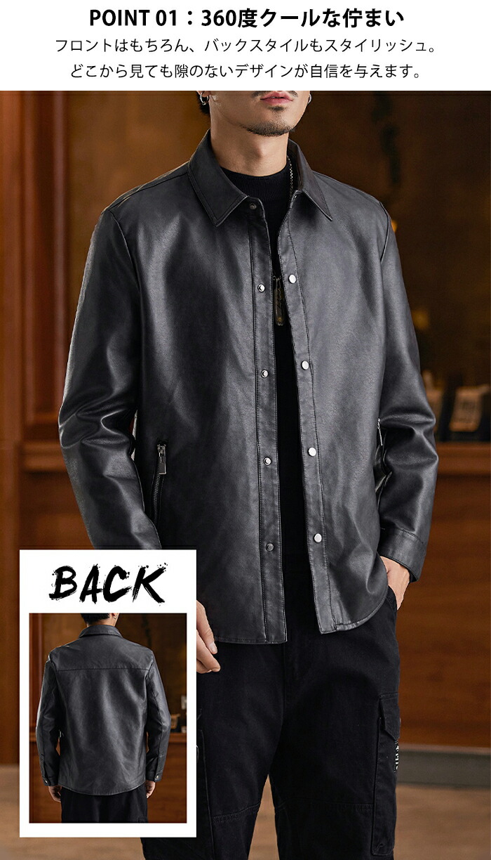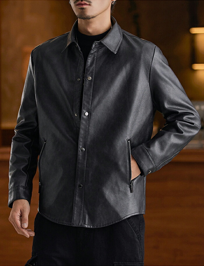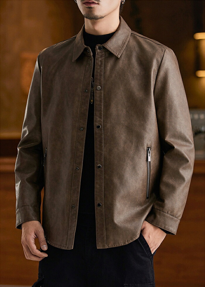 レザージャケット メンズ シャツジャケ メンズファッション 続々入荷中 ブラック グレージュ コーヒー M L XL 2XL 3XL 4XL