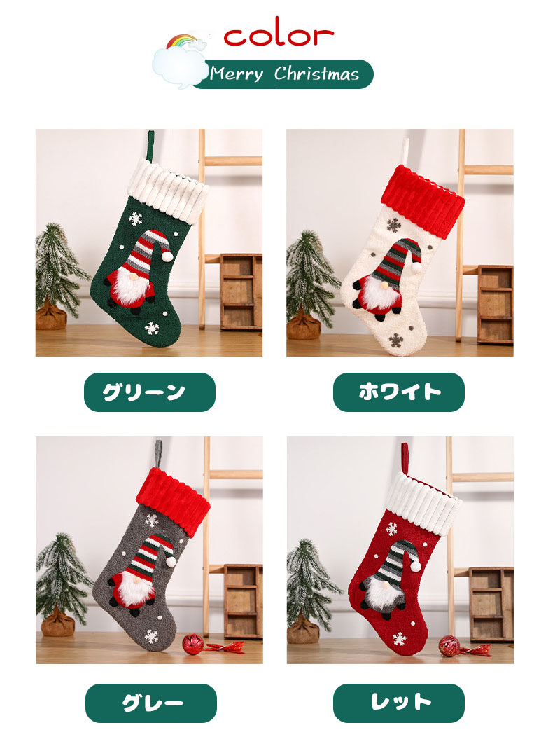 2025クリスマス クリスマスソックス レット ホワイト グレー グリーン レット ホワイト グレー グリーン