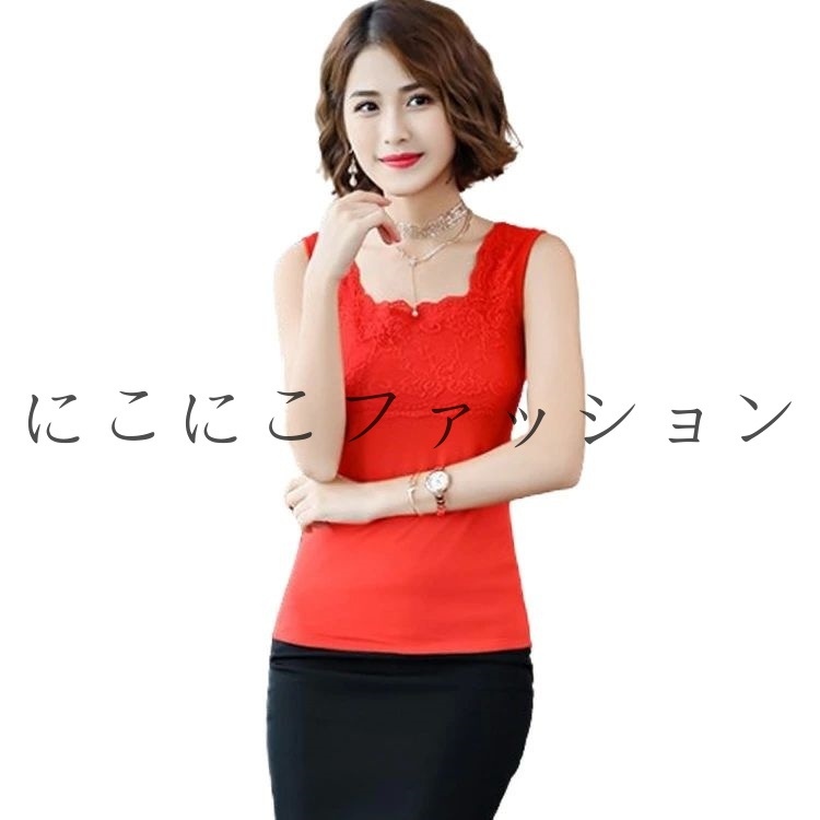 レディース 重ね着 レース 発熱インナ トップス タンクトップ 早い者勝ち ホワイト ブラック ワイン レッド M(薄手) L(薄手) XL(薄手) M(裏起毛) L(裏起毛) XL(裏起毛)