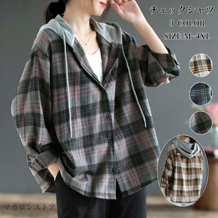チェックシャツ レディース パーカー レディースファッション 新作 イエロー グリーン グレー M L XL 2XL 3XL 4XL