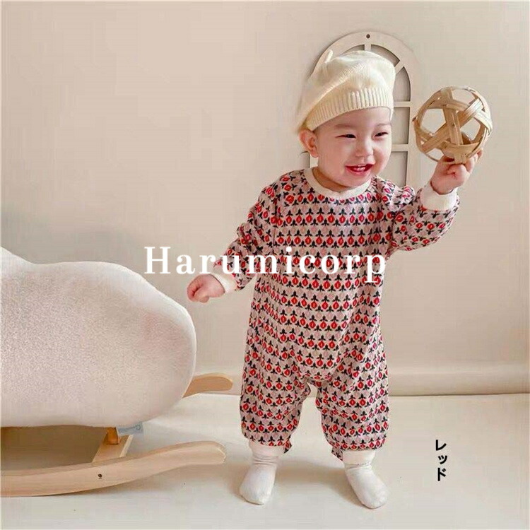 ロンパース 長袖 ベビー服 女の子 男 ベビー ベビー服 ファッション カバーオール ロンパース 人気 ダックコーヒー ライトコーヒー ブルー レッド 66cm 73cm 80cm 90cm