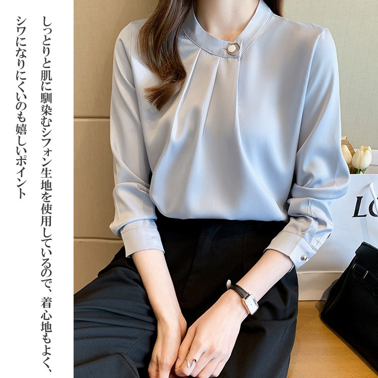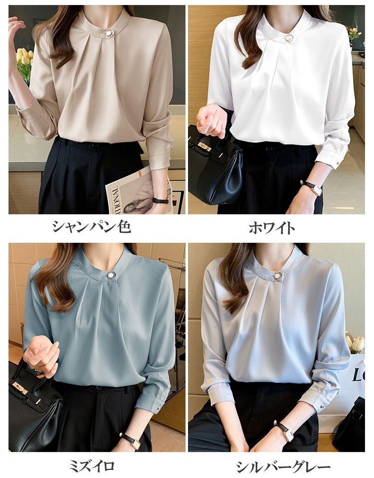 ブラウス レディース シフォン オフィ トップス シャツ ブラウス 超目玉商品 シャンパン色 シルバーグレー ミズイロ ホワイト S M L XL 2XL