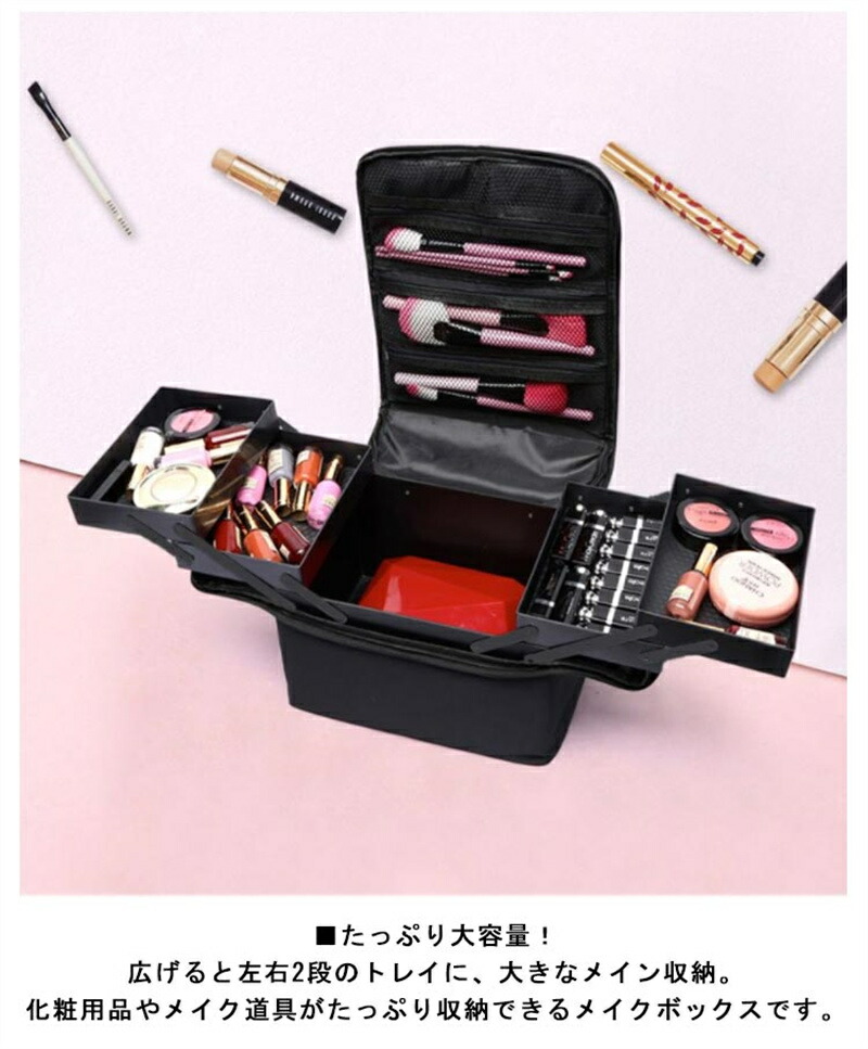 メイクボックス 収納 かわいい ナイロン 防水 バニティバッグ バニティポーチ イク道具 化粧品 化粧ポーチ ジェルネイル ネイル コスメ メイク 用品 バニティ バッグ 大容量 ボックス 黒 ケース