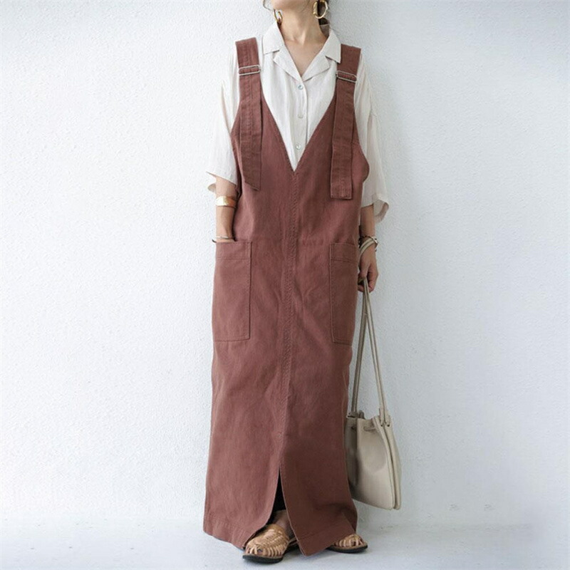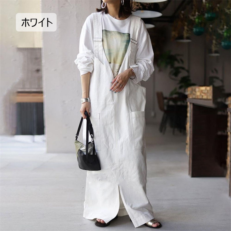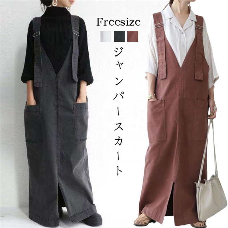 ジャンパースカート 夏 レディース サ ダークグレー ブラウン ホワイト