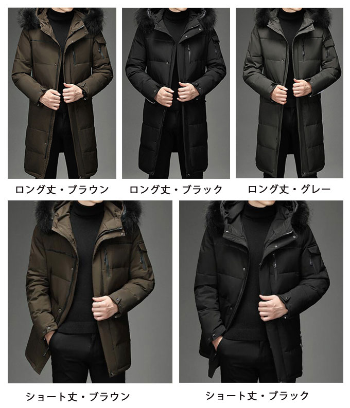 ダウンコート ロング メンズ ダウンジャケット 選べる ロング丈 ショート丈 ビジネス カジュアル 大きいサイズ 男性 ロングコート 冬 暖かい 防寒 ファーフード付 ロングダウンコート