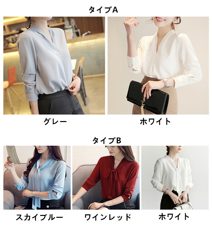 シャツ シフォンシャツ レディース 長 レディースファッション 続々登場 タイプAグレー タイプAホワイト タイプB(リボン付き)スカイブルー タイプB(リボン付き)ホワイト タイプB(リボン付き)ワインレッド XS S M L XL 2XL