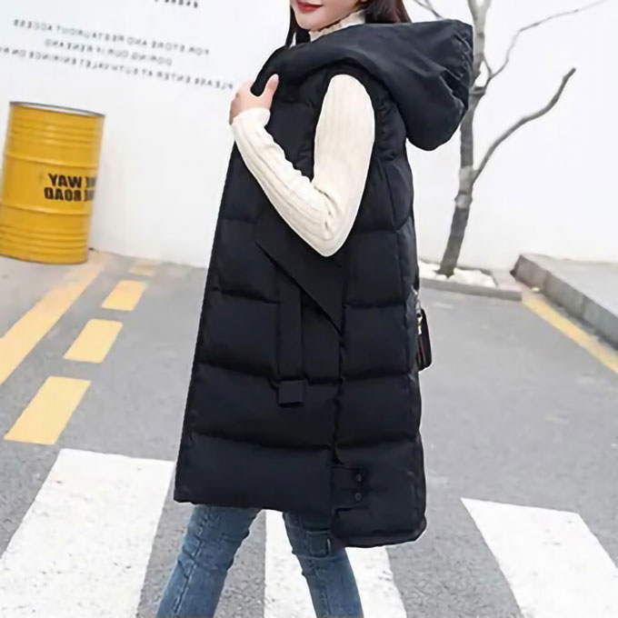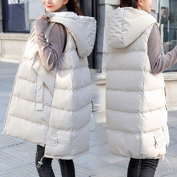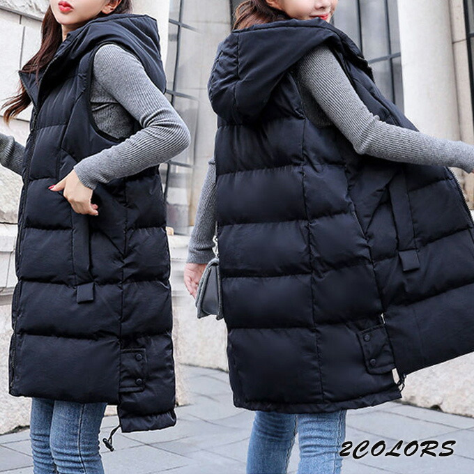 中綿ベストロングベスト レディース ダ トップス ベスト 豊富 ブラック アイボリー L XL 2XL 3XL