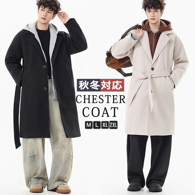 チェスターコート アウター メンズ 冬 メンズファッション 続々入荷中 ブラック ベージュ M L XL 2XL