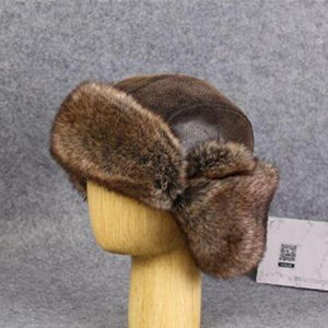 フェイクファーとスエードを使用した近年トレンドのイヤーフラップキャップ。