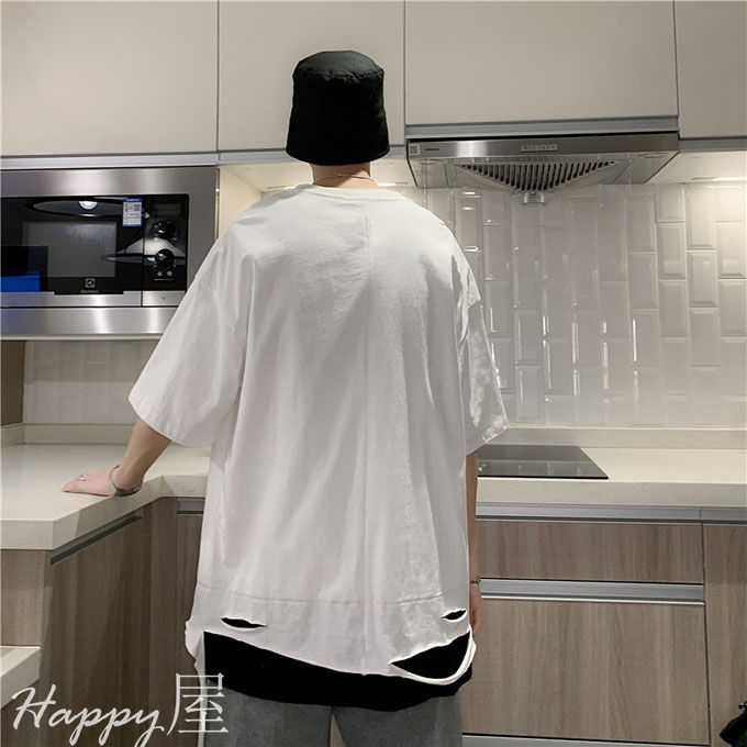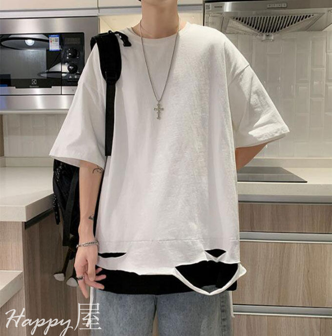 Tシャツ 半袖 ダメージ加工 メンズ トップス Tシャツ カットソー 通販 ホワイト ブラック M L XL 2XL 3XL