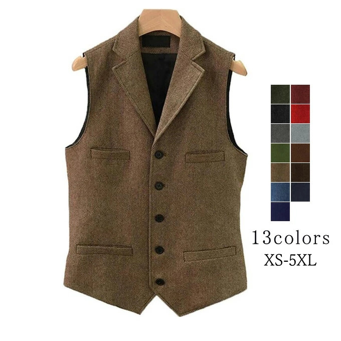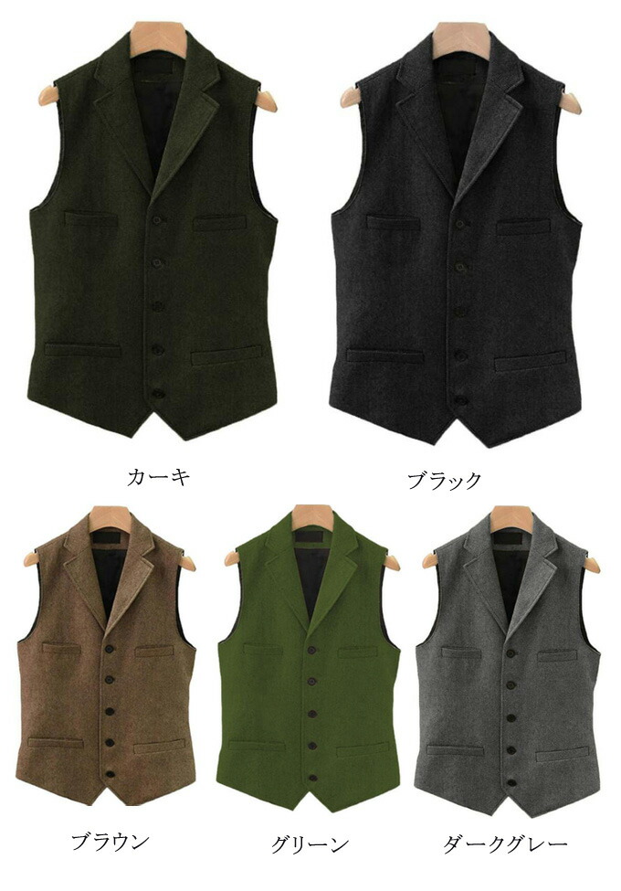 ベスト メンズ スーツ ジレ ツイード メンズファッション 豊富 XS S M L XL 2XL 3XL 4XL 5XL 6XL ブラック カーキ ブラウン グリーン ダークグレー ブルー ネイビー サファイアブルー ライトグレー レッド ワインレッド ダークオレンジ コーヒー色