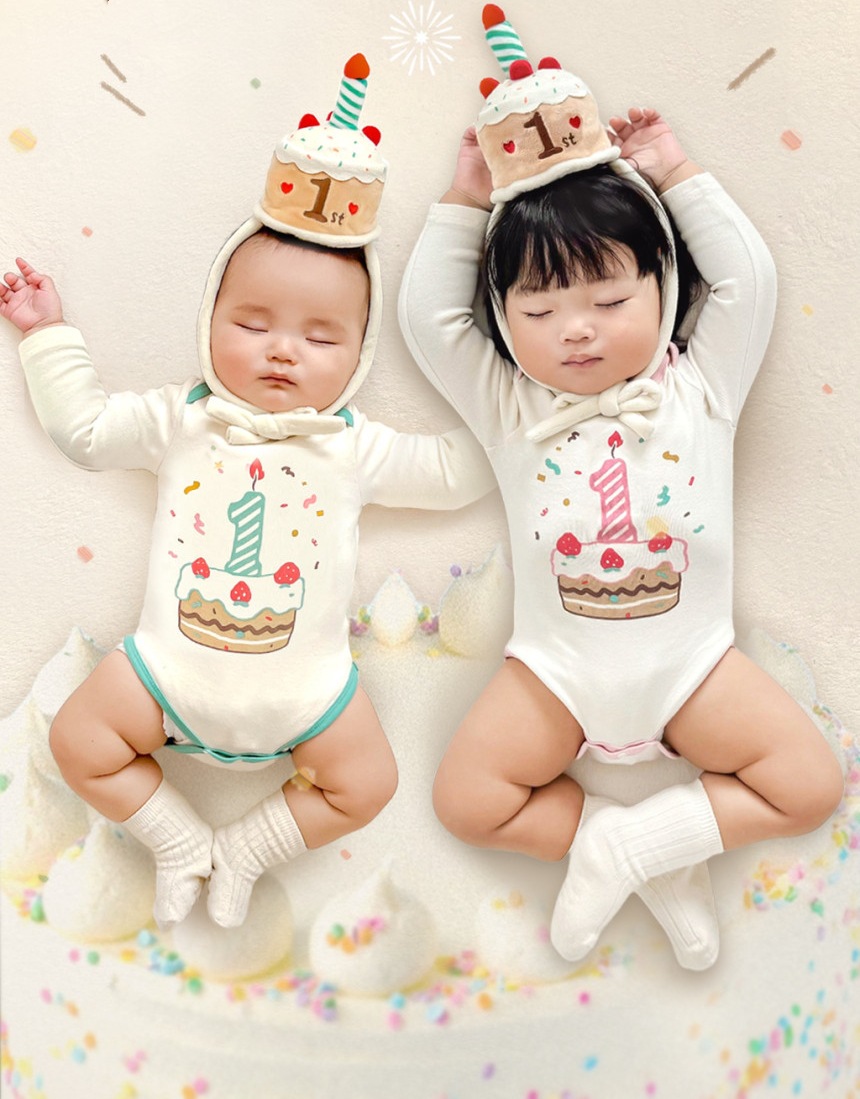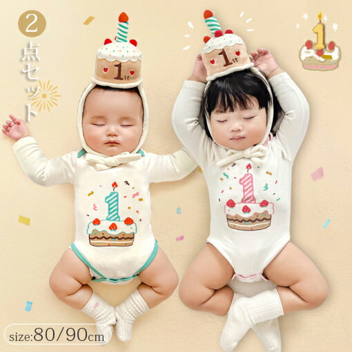 ベビー ロンパース 誕生日 バースデー ベビー ベビー服 ファッション カバーオール ロンパース 人気 ブルー ピンク 80cm 90cm