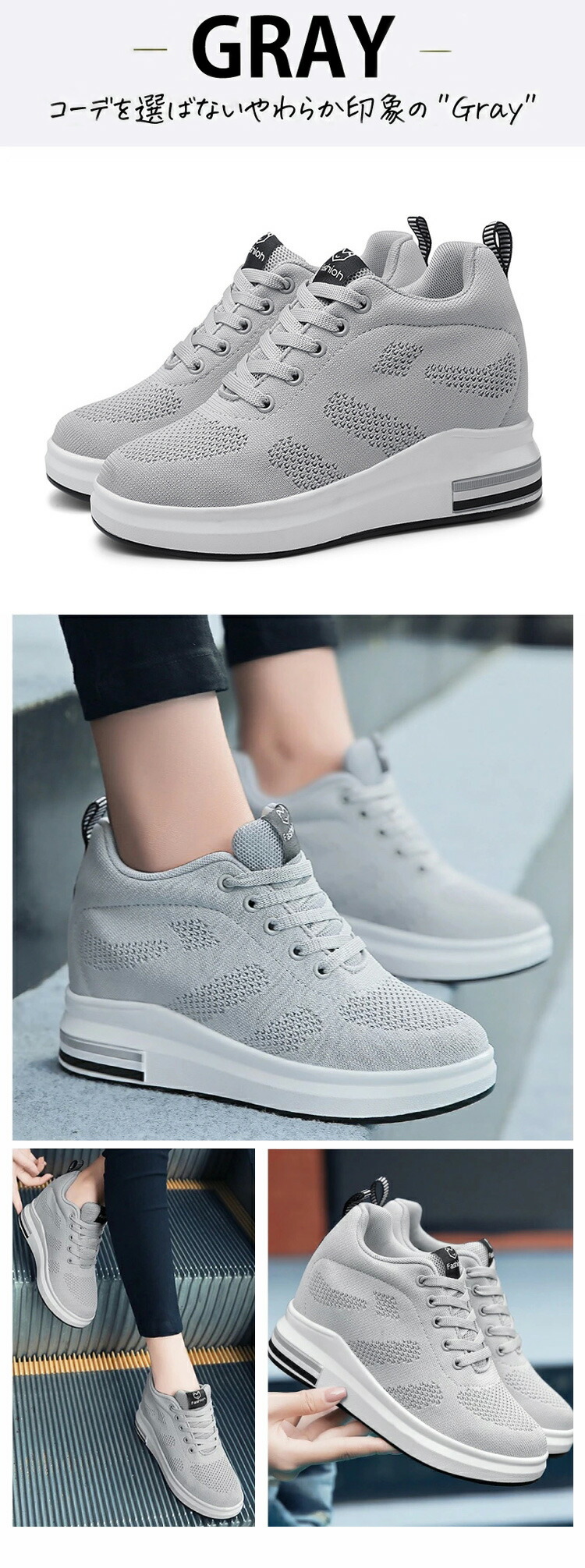 厚底スニーカー レディース ウォーキン レディース靴 スニーカー 人気 ブラック グレー ホワイト 22.0cm 22.5cm 23cm 23.5cm 24cm 24.5cm