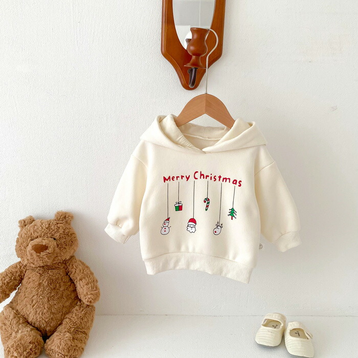 クリスマス 長袖 パーカー 裏起毛 ト ベビー ベビー服 ファッション カバーオール ロンパース 通販 レッド ホワイトベージュ 73cm 80cm 90cm 100cm