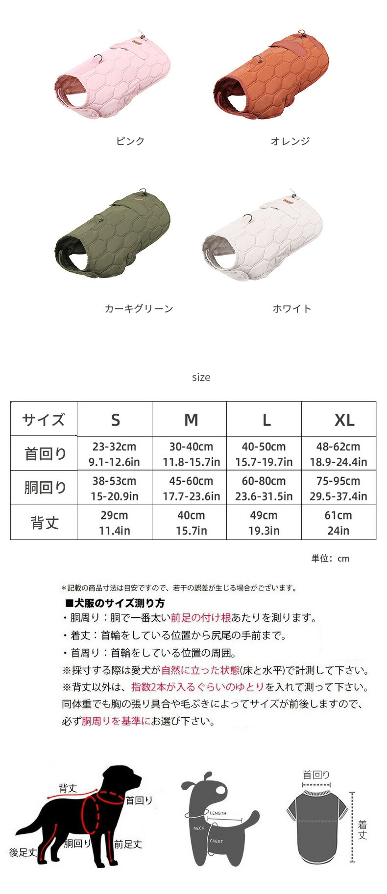 犬 犬服 ジャケット ドッグウェア 防 ペット ペットグッズ 豊富 ピンク オレンジ カーキグリーン ホワイト S M L XL
