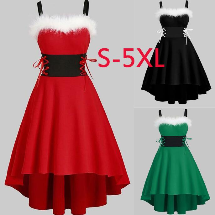 クリスマスドレス キャミソール ロング レディースファッション 続々登場 ブラック レッド グリーン S M L XL XXL 3XL 4XL 5XL