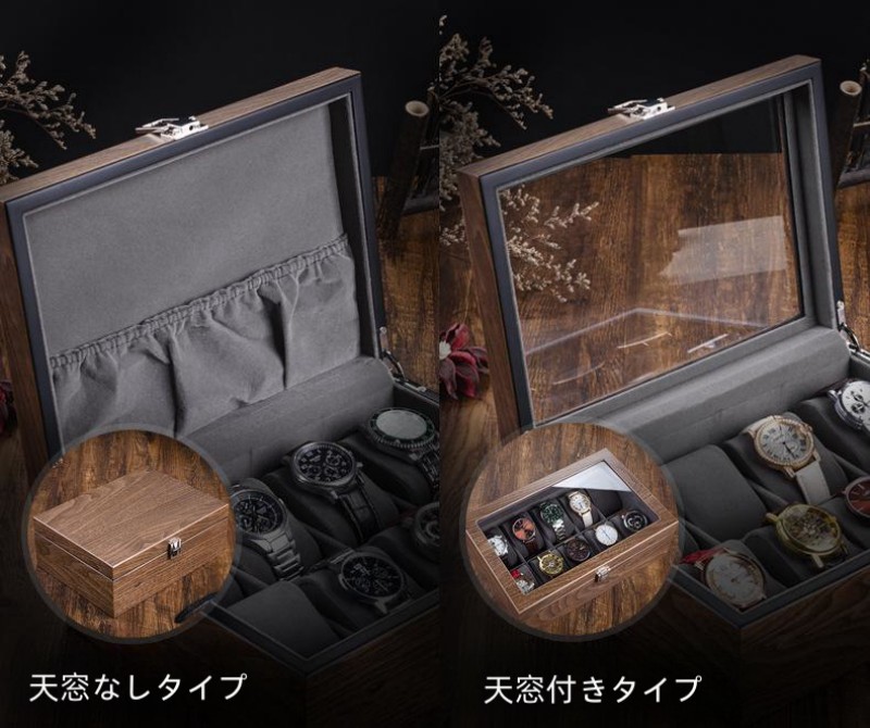 時計ケース クルミ木製 3本 4本 6 腕時計用アクセサリー 腕時計収納ケース 特集 3本用 4本用 6本用 8本用 10本用 天窓付き 天窓なし