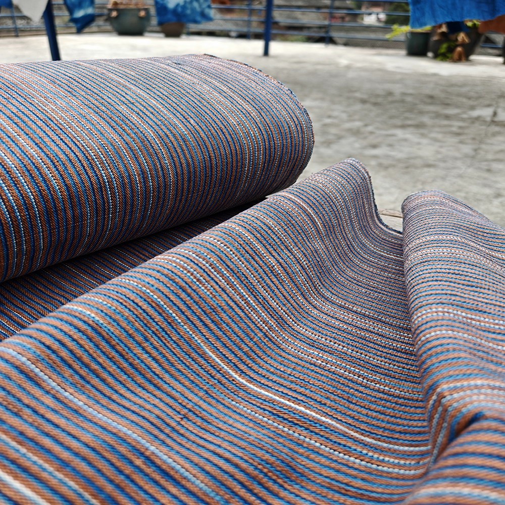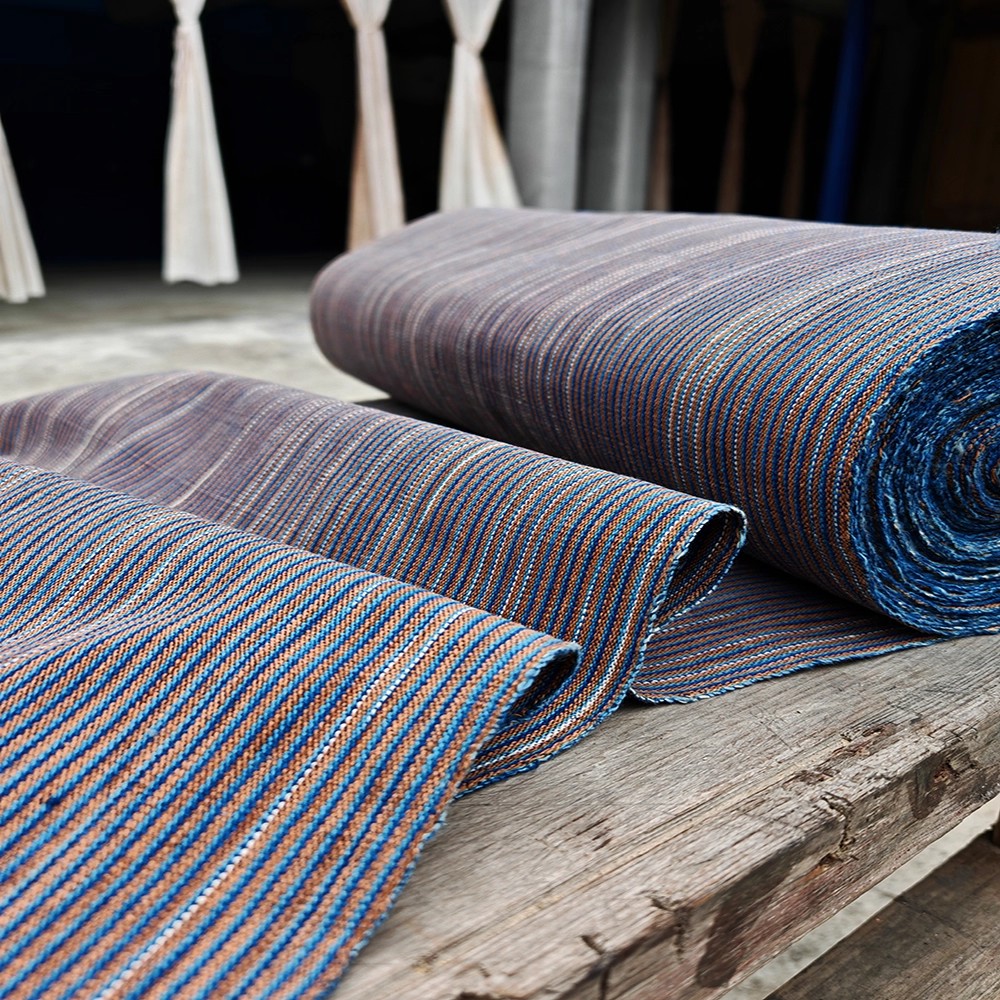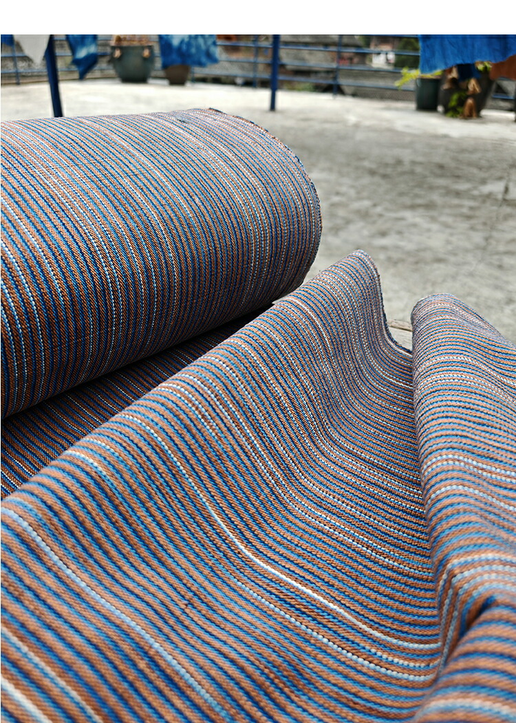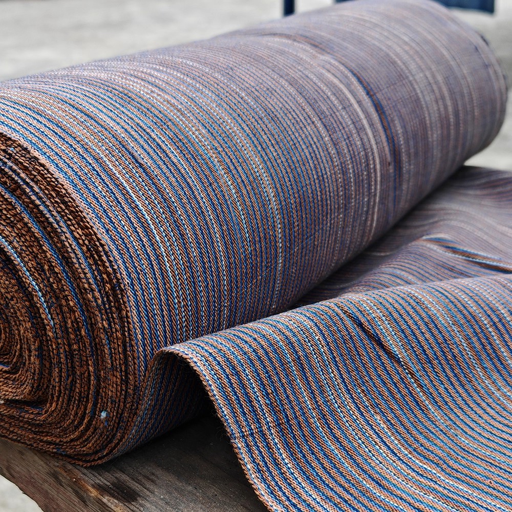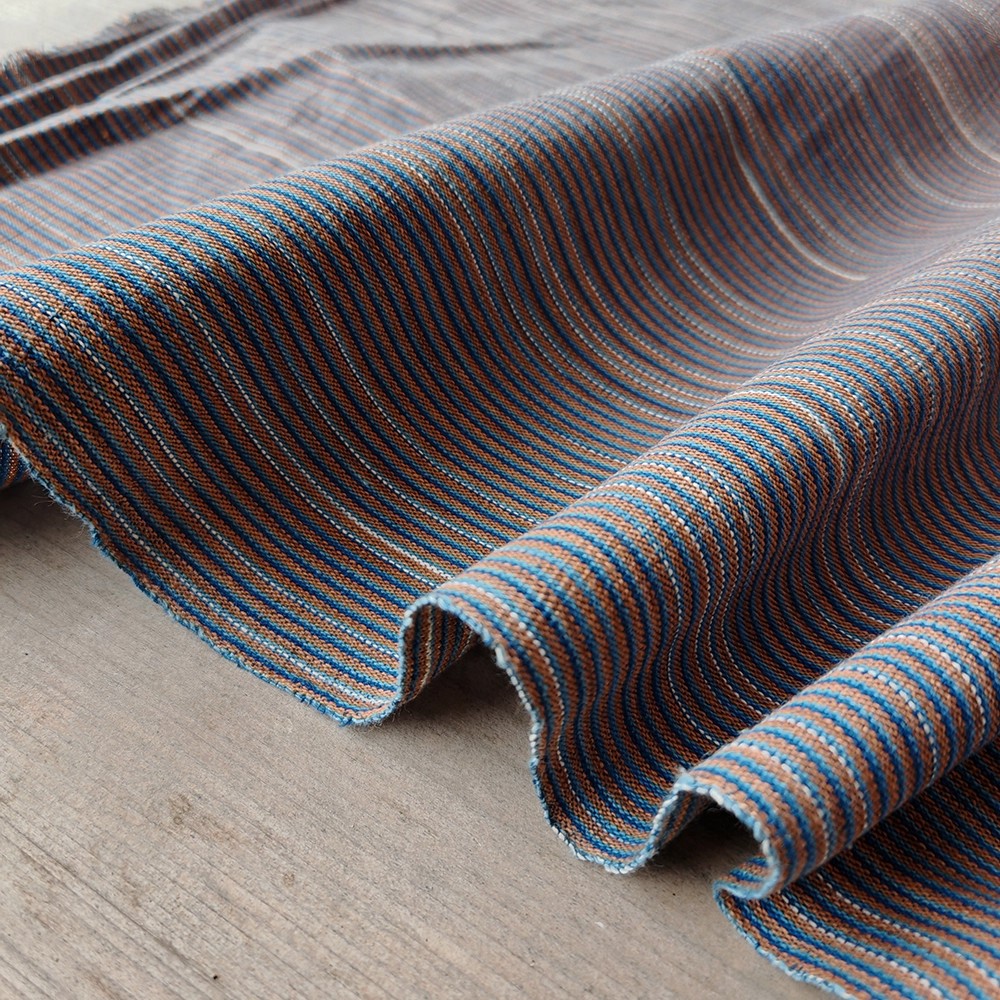 40cm幅 95cm単位 生地 布 布地 生成り風布地 あら織り 粗織り布 色織り生地 先染め織り 手織り布 手紡ぎ 植物草木染め 純棉生地 綿100% ライン ブラウン 服装地用生地 手作り ブルー