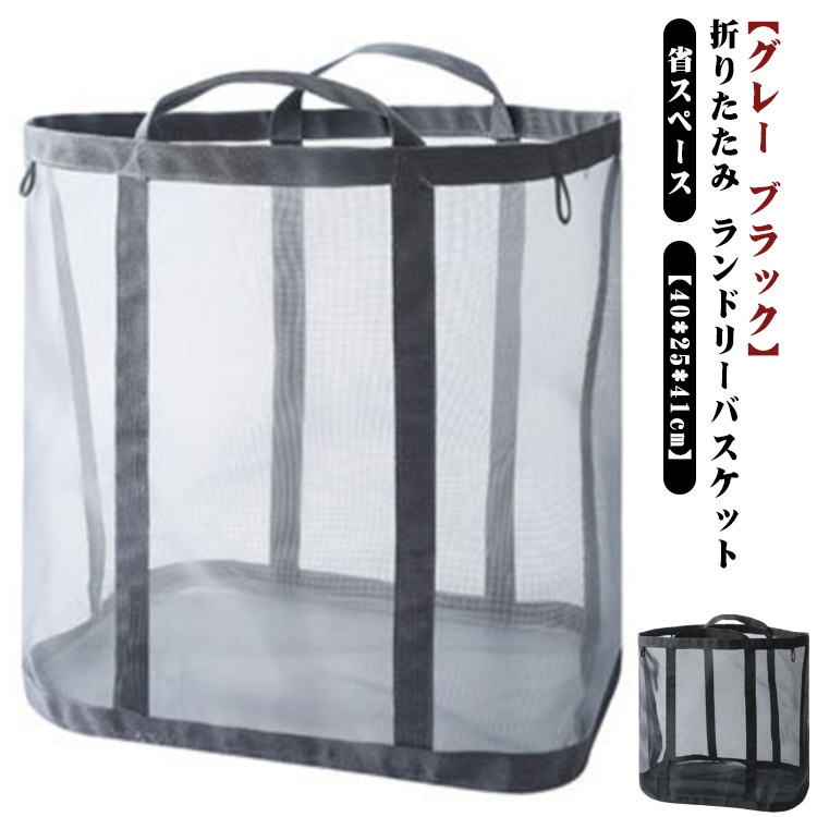 軽量 大容量 自立式 脱衣かご 折りた グレー ブラック