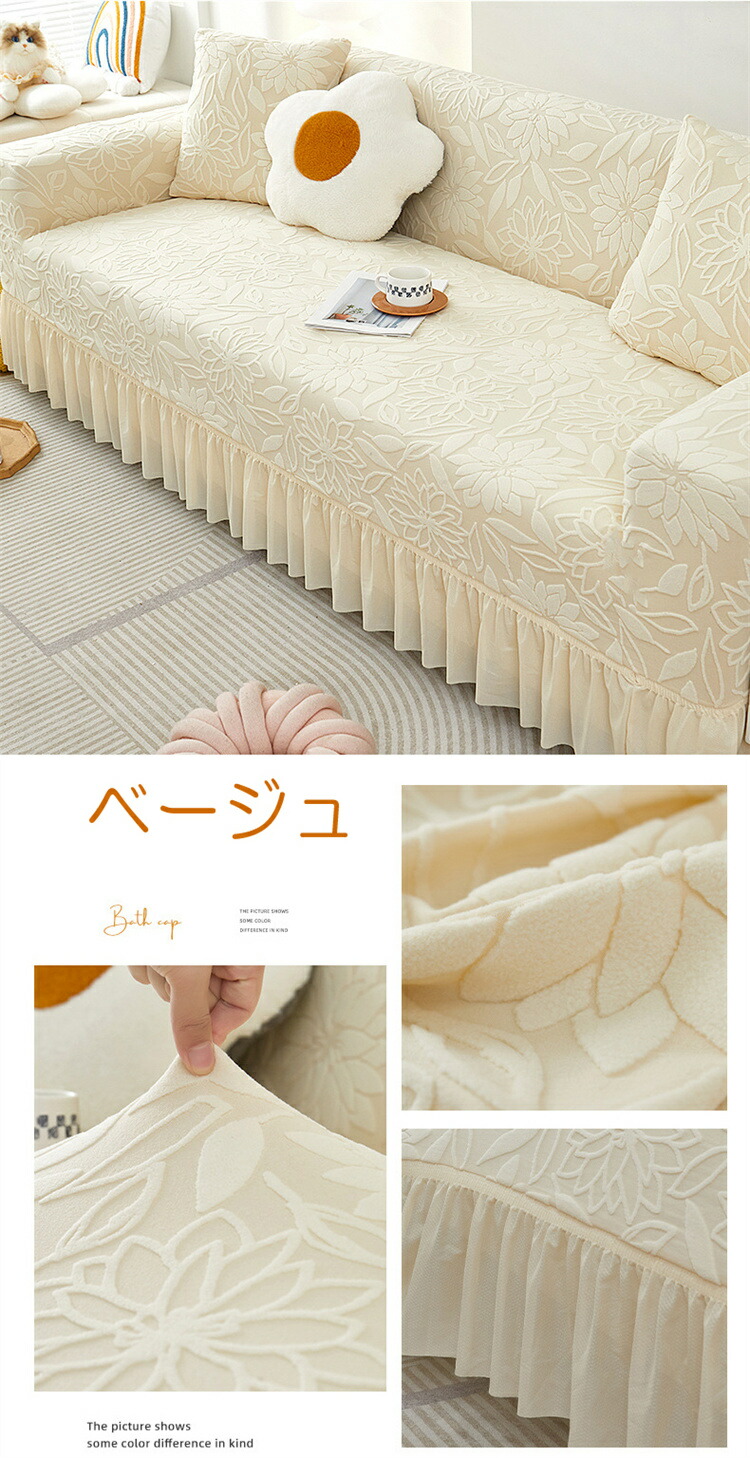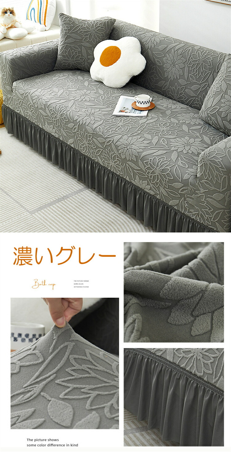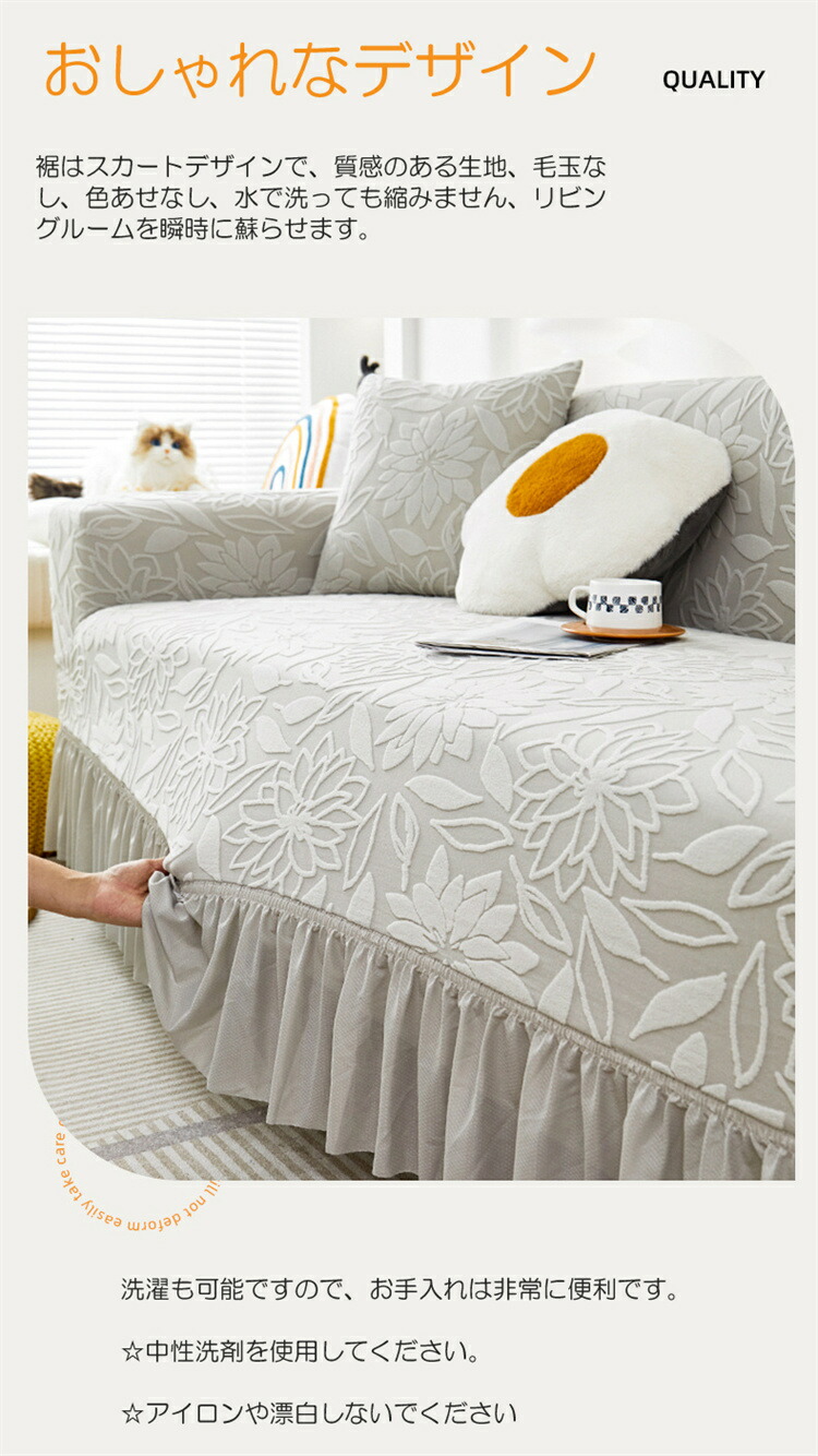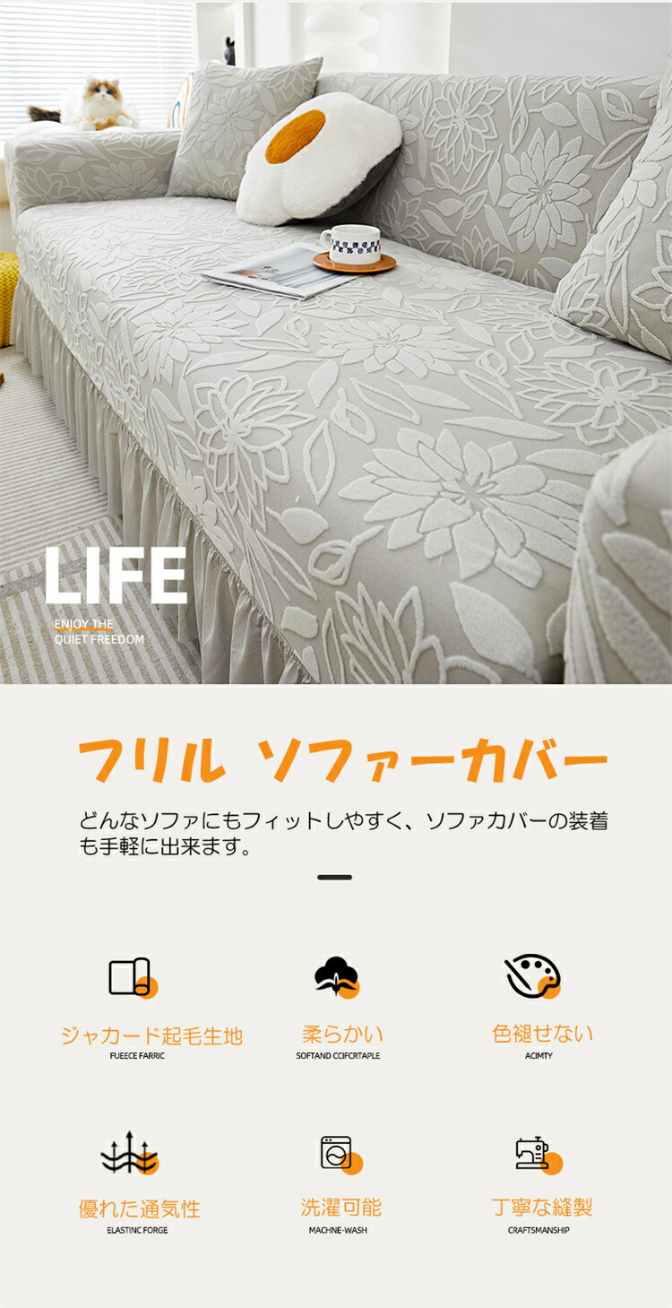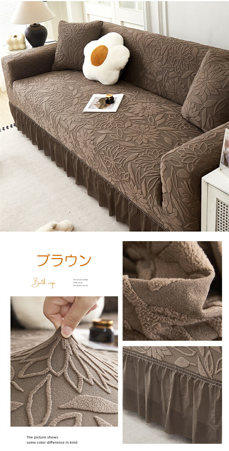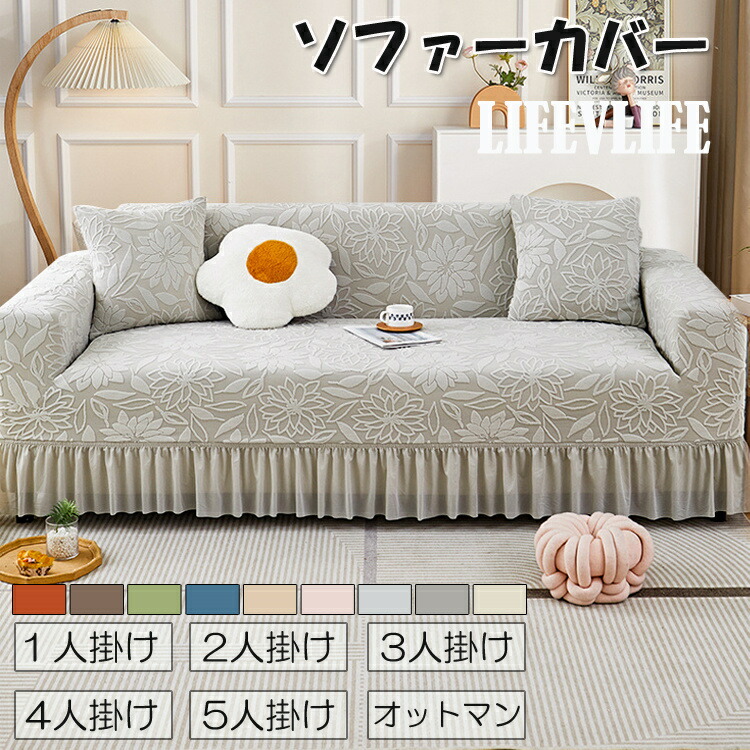 フリル ソファーカバー 肘あり 3人掛 グレー 薄いブラウン ブラウン 濃いグレー ピンク オレンジ グリーン ブルー ベージュ オットマン 1人掛け 2人掛け 3人掛け 4人掛け 5人掛け