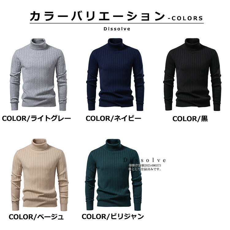 ハイネックセーターメンズ長袖ニットセー トップス ニット セーター 豊富 S M L XL 2XL ライトグレー ネイビー 黒 ベージュ ビリジャン